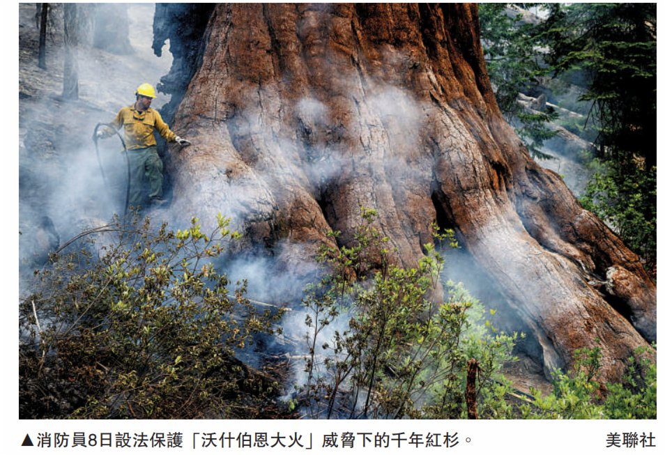 優勝美地國家公園內種植着美國最古老、最具標誌性的巨型紅杉。本月7日,公園南部和附近地區燃起的「沃什伯恩大火」(Washburn Fire)對園內500多棵古老紅杉造成威脅,其中包括一棵生長了3000年的巨型紅杉「灰熊巨人」,它是世上最大的樹木之一。1903年,時任美國總統羅斯福在「灰熊巨人」樹下露營三天,並稱之為「勝殿」。