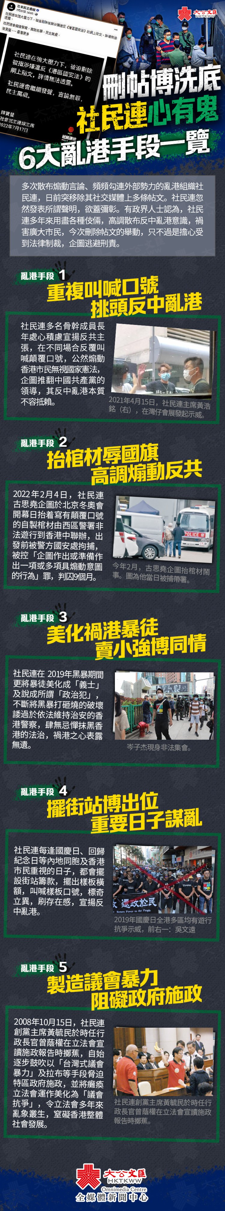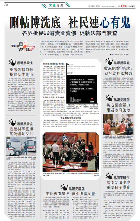 社民連多名骨幹成員長年處心積慮宣揚反共主張,在不同場合反覆叫喊顛覆口號,與反華邪教「法輪功」如出一轍,公然煽動香港市民無視國家憲法,企圖推翻中國共產黨的領導,其反中亂港本質不容抵賴。