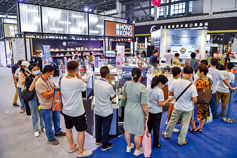 除了美食放送,「香港時尚館」還推出精美禮品派送、觀眾現場打卡等集聚人氣的活動。記者在現場看到,貫通式的展館設計時尚大氣,令觀眾對各式展品一覽無遺,彷彿置身於香港購物中心,沉浸在時尚購物氛圍之中。香港貿發局中國內地總代表鍾永喜表示,希望能通過本次消博會,發揮香港自貿港的疊加優勢,帶領香港特色消費品進入內地市場,鼓勵品牌企業積極融入國家發展大局。