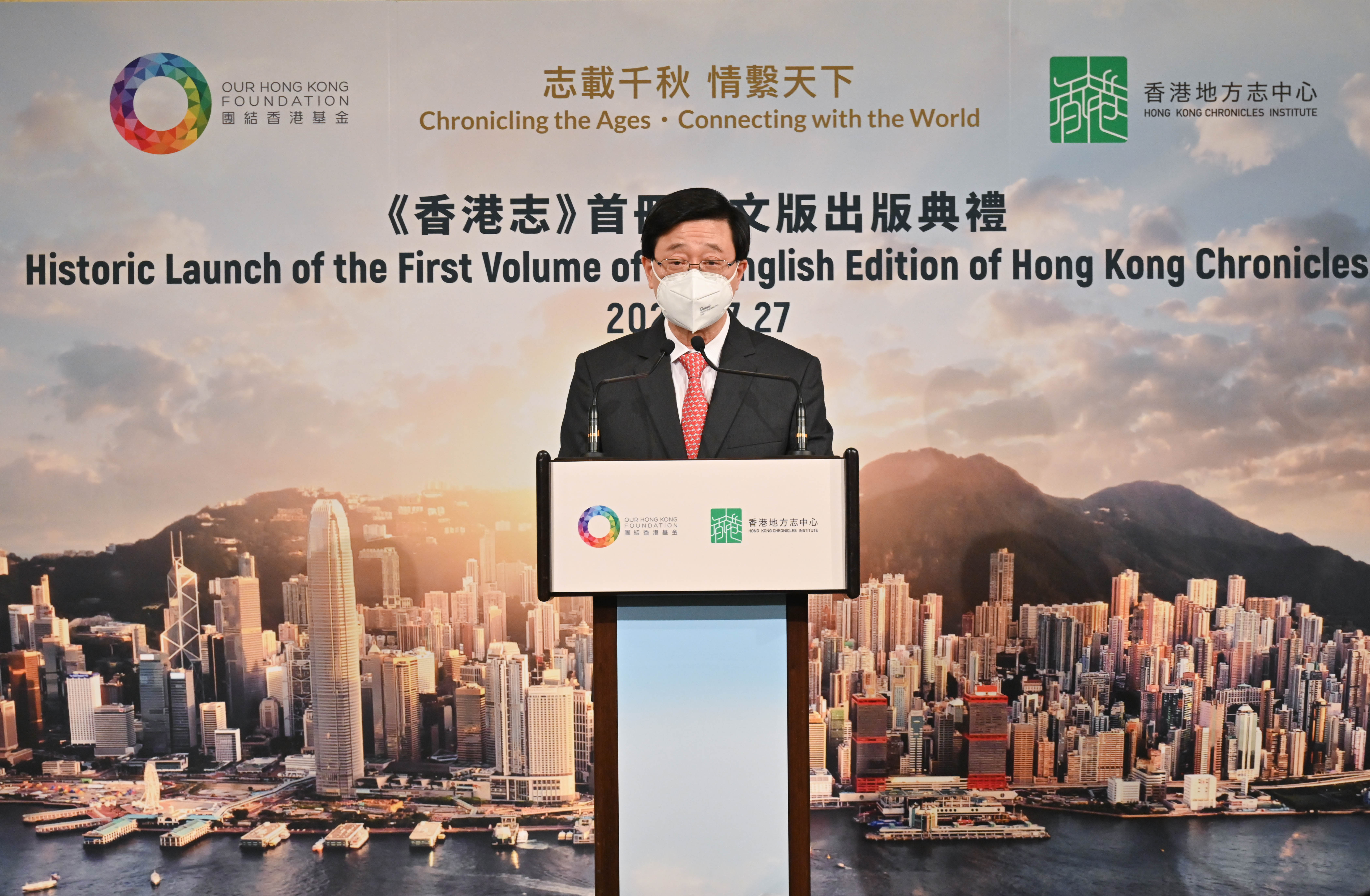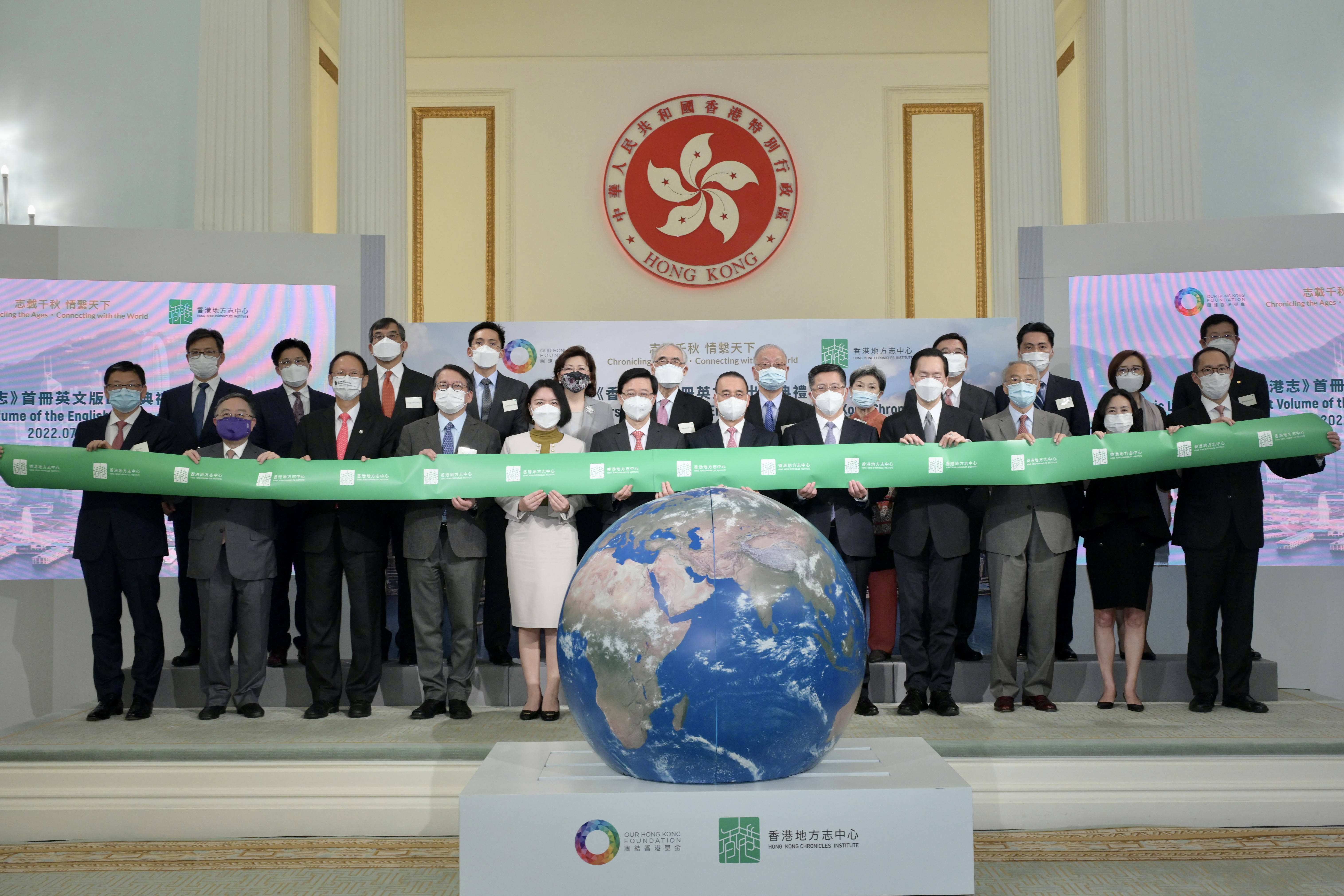 特區政府全力支持香港地方志中心編纂《香港志》,尤以其敘述史實、不作詮釋的編輯原則,全面、系統化及客觀地記錄香港歷史和傳承。《香港志》兩冊中文版《總述‧大事記》和《香港參與國家改革開放志》早前經已出版,約36萬字、長約800頁的英文版《總述‧大事記》(Overview & Chronology)則今日與讀者見面。李家超感謝香港地方志中心以專業精神和熱情投入這浩瀚的修志項目中,亦感謝參與的主編、專家、學者,以及相關機構的竭心盡力。