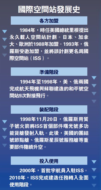 ISS由俄羅斯、美國、加拿大、日本及歐洲太空總署(ESA)共同建造,主要由俄羅斯艙段和美國艙段組成,被視為冷戰後國際合作的象徵。但隨着俄羅斯與西方關係日趨緊張,ISS自身亦面臨老化問題,其命運充滿不確定性。