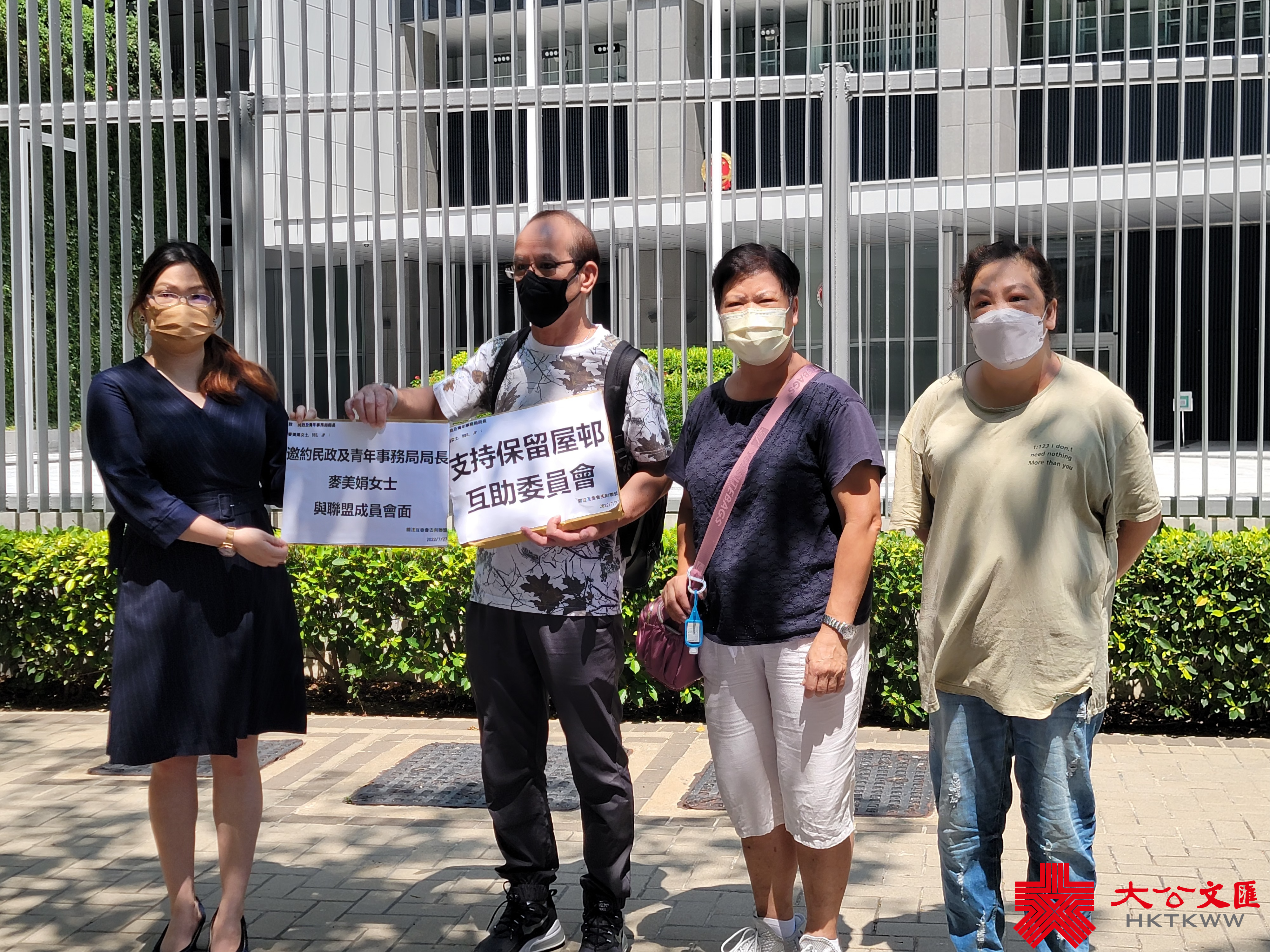 大公文匯全媒體報道,多名互委會代表組成「關注互委會去向聯盟」,今日(28日)到政府總部門外請願,要求政府保留屋邨互助委員會,期望民政及青年事務局長安排時間會見代表。