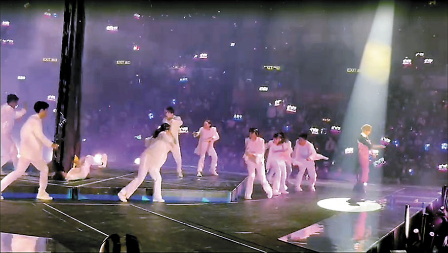 事發昨晚10時許,當時成員盧瀚霆及呂爵安於表演期間,舞台上方一個懸吊半空的大型顯示屏幕突然墜下。現場影片顯示,當大屏幕墜下時,首先垂直砸中其中一名舞蹈員的頭部和肩膊,該舞蹈員倒地後被屏幕壓住。大屏幕隨即再翻側,壓中另一名舞蹈員。現場一片恐慌,有歌迷大聲尖叫。有職員其後嘗試移開電子屏幕但不成功,消防員和救護員接報到場救出傷者。