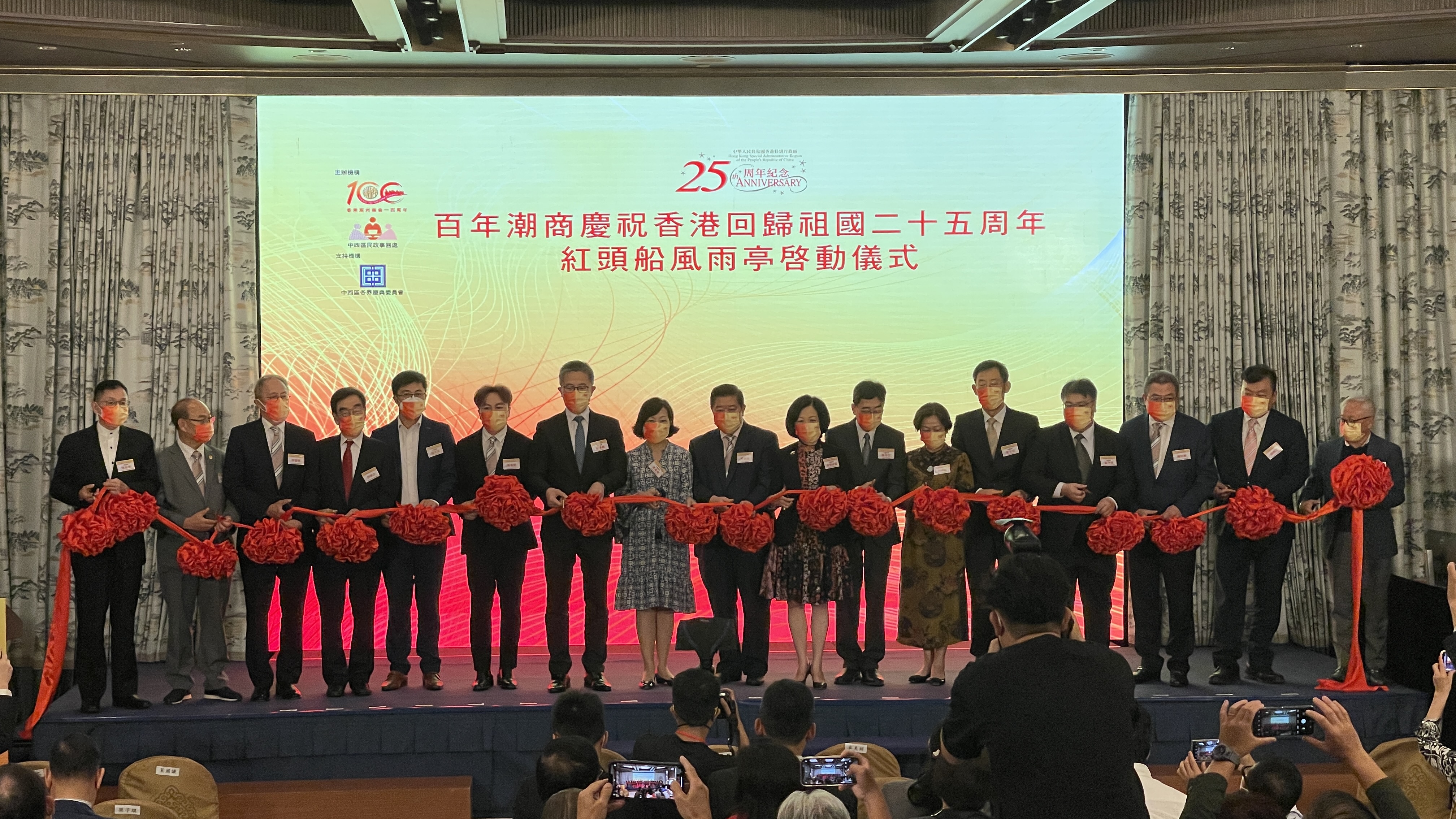 (大公文匯全媒體記者李斯哲報道)為慶祝香港回歸祖國25周年,香港潮州商會決定與中西區民政事務處共同在中山公園海濱長廊建造紅頭船風雨亭,並於今日(29日)舉行啟動儀式。香港行政會議召集人葉劉淑儀議員、民政及青年事務局局長麥美娟、警務處處長蕭澤頤、行政會議成員高永文、全國政協委員姜在忠、胡劍江、高佩璇,立法會議員顏汶羽及中西區民政事務專員梁子琪出席儀式並擔任主禮嘉賓。