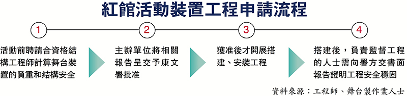 該名業內人士指出,舞台及升降台等只要高於1.7米,就要由結構工程師檢查,簽署文件核實安全提交康文署,而電力裝置、舞台燈光等也要檢測合格攞牌,康文署才會批准演唱會舉行。但在開鑼前檢查核准後,每場演唱會舉行期間就無須再檢查。他認為,康文署有駐場舞台監督,應要確保鋼索及其他裝置全部合乎標準。