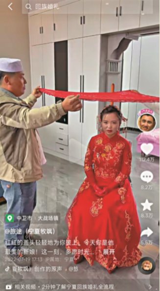 「那天是個下雨天,晚飯後就躺在床上看視頻,突然便看到這個農村婚禮。」張婕所說的婚禮是抖音「寧夏牧颯」近日發的一個視頻。或許是陝北和寧夏地緣相近,風俗相近的緣故,張婕一下子被感動了。「特別親切,好像又回到了小時候,那種感覺讓人陶醉。」