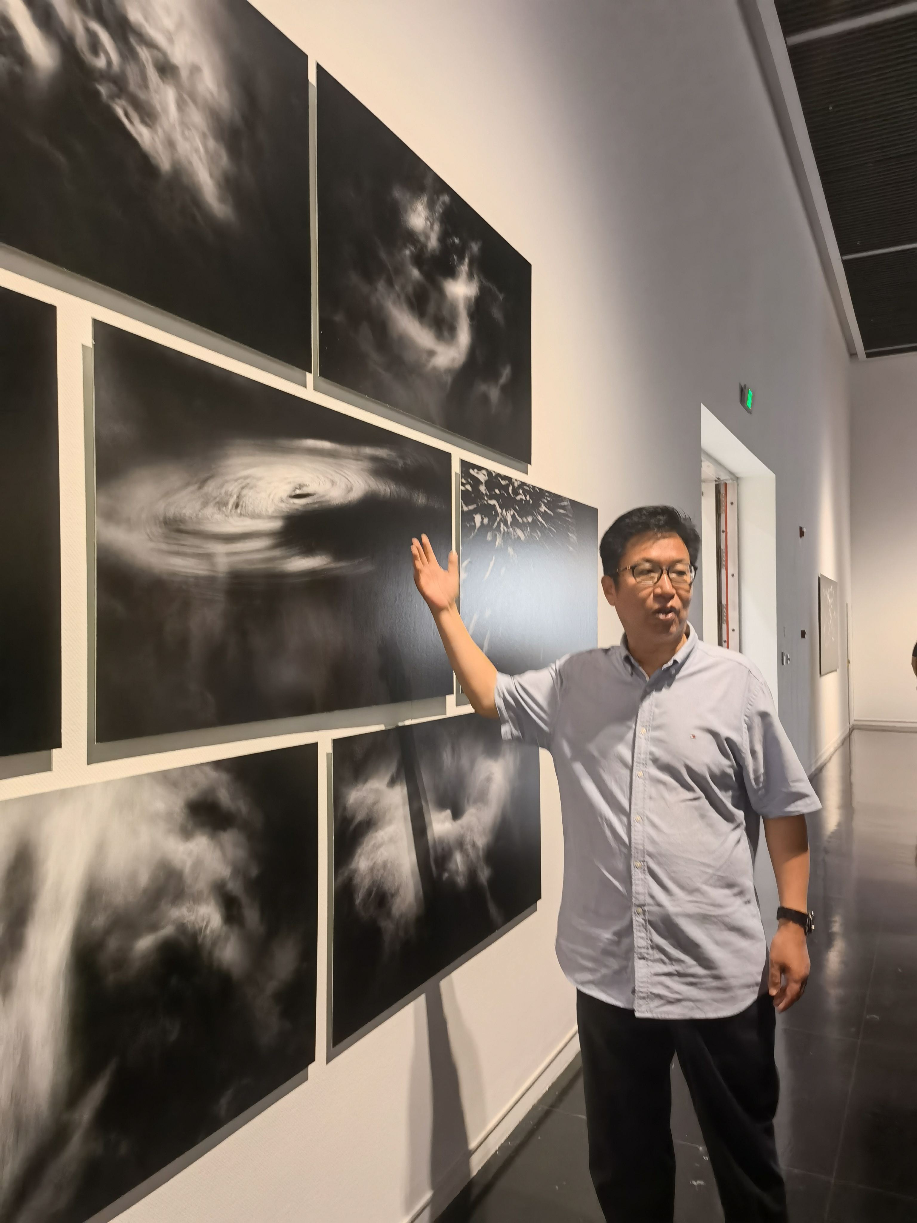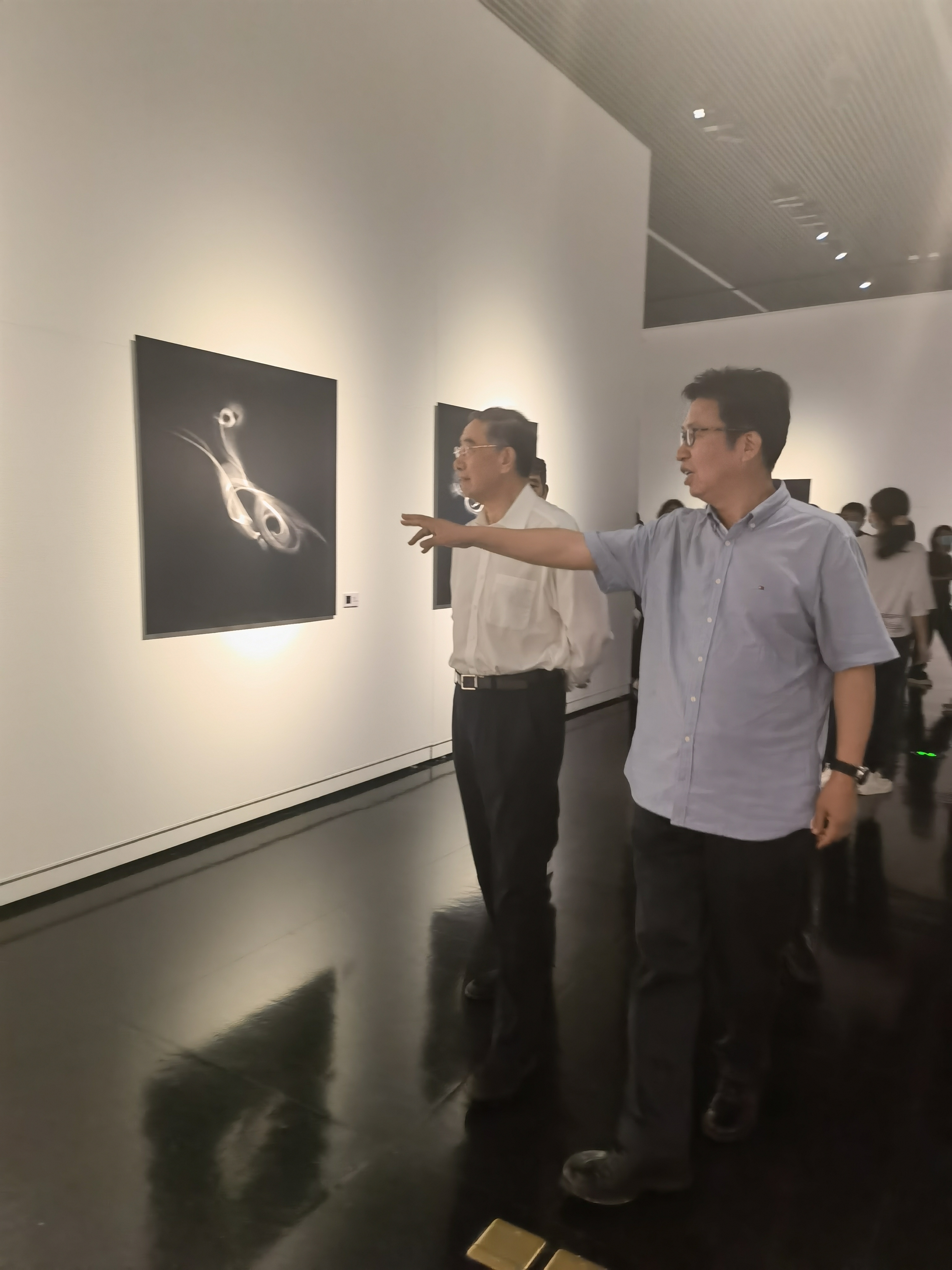 藝術家李英傑在發言中講到,他的「太極三部曲」系列作品「太極拳」部分以慢速攝影的方法將打拳的軌跡可視化展示出來,「太極圖」部分以太極拳為物化載體演繹太極文化,「河洛象」以河圖洛書為參照,與自然山川、星空宇宙對話,是用攝影的形式對太極文化、東方世界觀的探索。開幕儀式上,李英傑先生將此次展出的黃河主題《太極三部曲》攝影展中的30件作品無償捐贈給鄭州美術館,鄭州美術館黨支部書記閆萍代表鄭州美術館向李英傑先生頒發了鄭州美術館作品收藏證書。