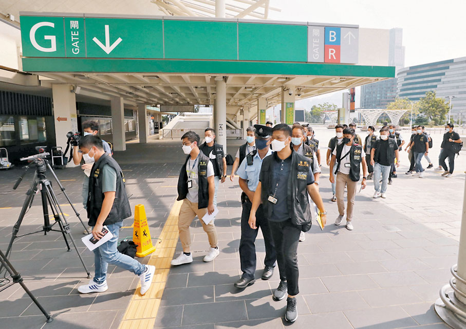 昨日下午約3時,西九龍總區刑事部(行動)警司鍾雅倫率領約40名重案組探員,帶同一批設備到達紅磡體育館作現場蒐證,其間軍裝警員在門外維持秩序。至下午約4時,政府化驗所人員亦奉召到場協助。