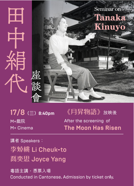 溝口健二的靈感繆斯,與小津安二郎、木下惠介等大師合作無間,田中絹代(1909–1977)在日本影史上佔據至高無上的女優地位,無出其右。銀幕上以出色演技成為日本一代女性象徵,廣受尊崇;鏡頭後執起導筒,技藝一樣超卓,卻可惜未獲同等重視。8月17日(星期三)下午20時40分M+戲院,《月昇物語》放映後,李焯桃和喬奕思將設座談會,紀念這位為電影奉獻一生的非凡女性。座談會以粵語主講,觀眾需憑票入場。