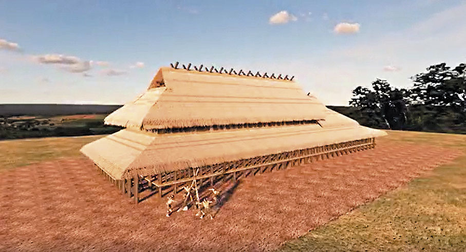 在2021年度全國十大考古新發現終評會上,雞叫城遺址項目組首次向公眾披露了北京大學考古文博學院團隊的復原研究結果。根據遺址底座地基,團隊復原出4個方案,均以木結構為主,茅草屋頂,豪華氣派。