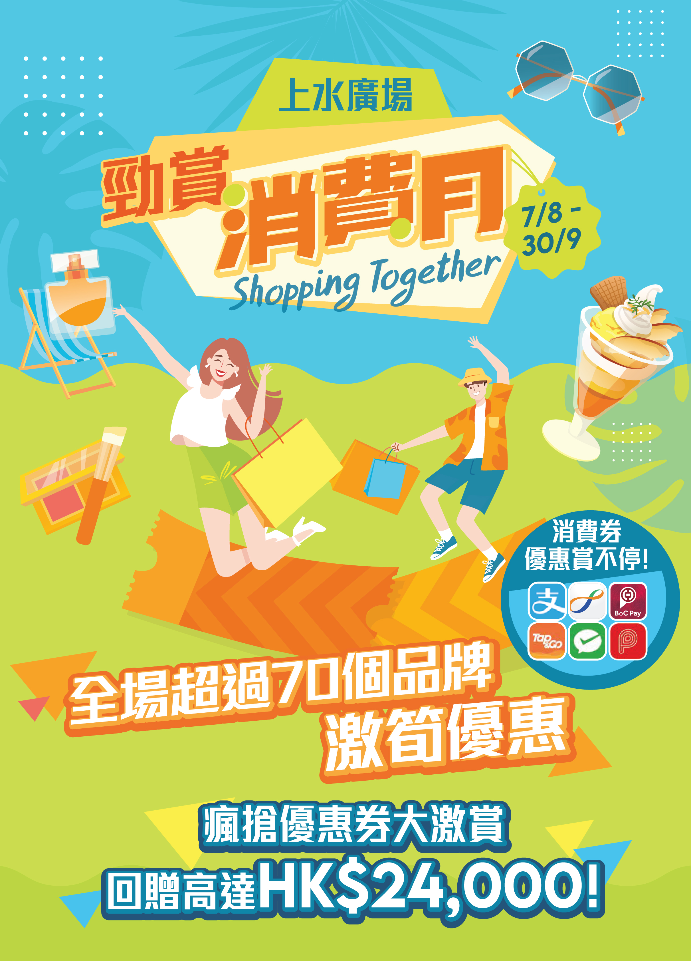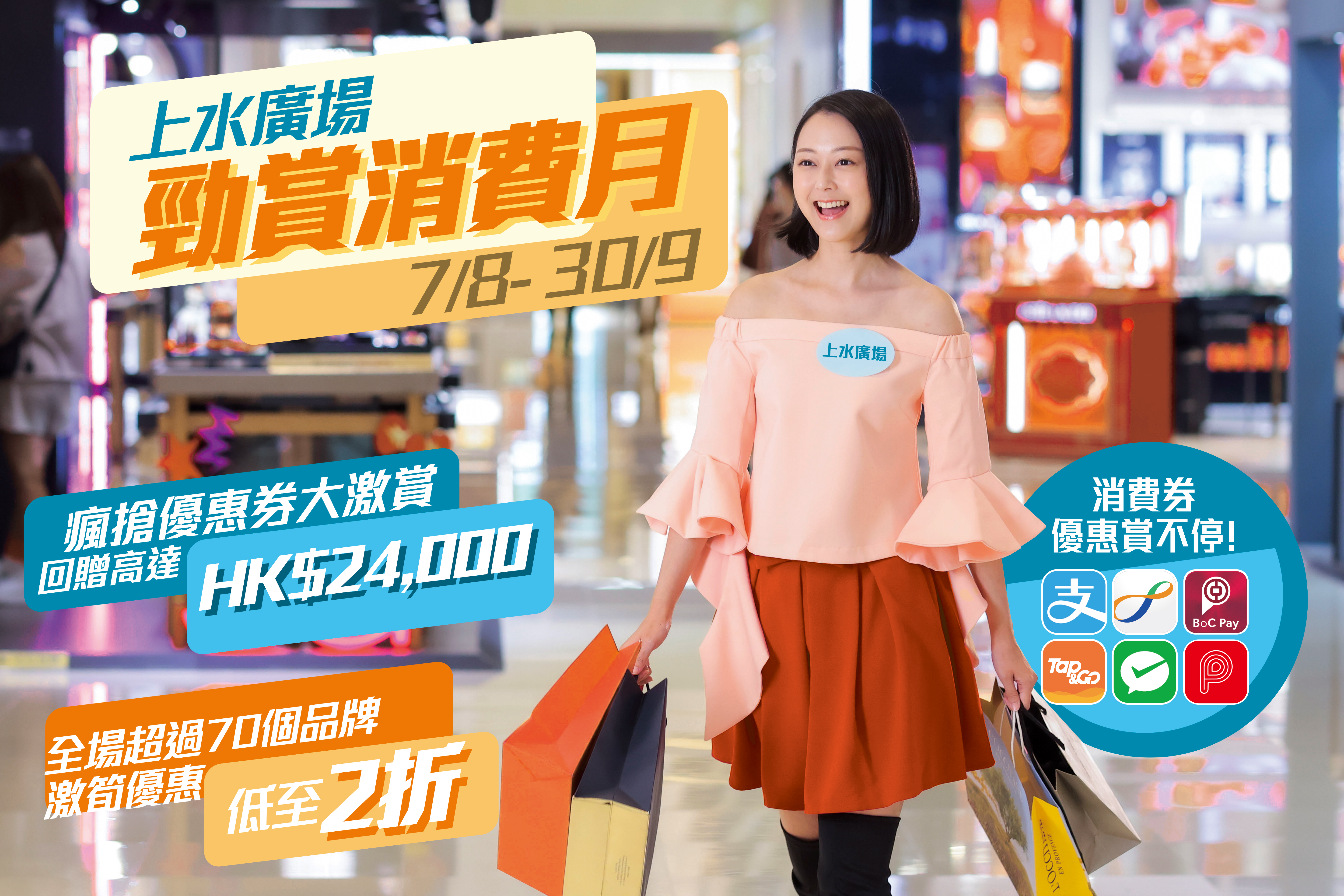 大公文匯全媒體報道,政府第二階段的電子消費券將於8月7日起分期發放,新地旗下上水廣場將同步由8月7日至9月30日推出「勁賞消費月」,顧客透過消費券六大支付平台到場消費回贈最高可達24000元港幣,連串推廣活動讓消費券賞上加賞!