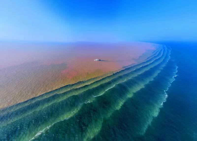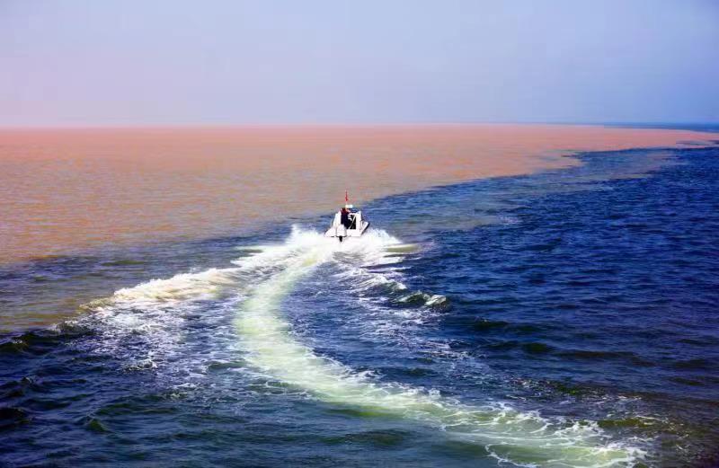 (大公文匯網記者丁春麗 通訊員魏強)日前,在山東省東營市墾利區相關海域,黃河入海口分界線出現波紋狀「黃藍交匯」罕見景觀。記者了解到,這是當地第一次拍到黃河入海口波紋狀「黃藍交匯」景觀。黃色的河水向東舒展,和蔚藍的大海纏繞交匯,宛若耕海犁波,黃藍相間,層次分明。近年來,東營市墾利區深入實施黃河流域生態保護和高質量發展戰略,大力推動生態環境保護治理,黃河三角洲生態環境持續向好。