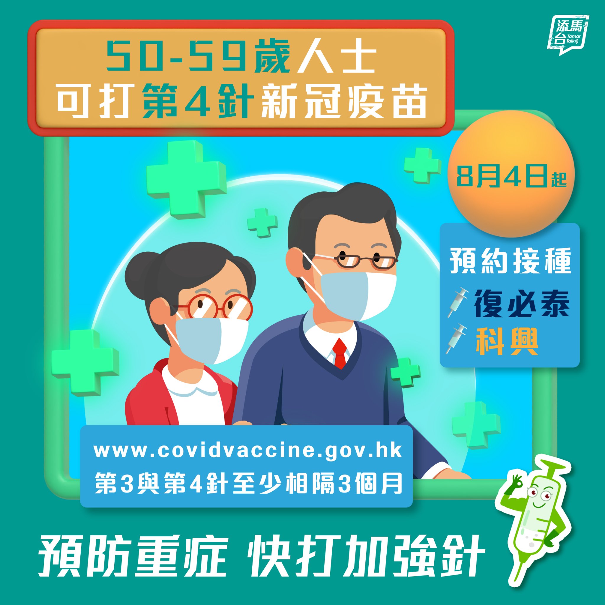 另外,專家建議50歲至59歲人士與老年人口一樣,在接種第3劑新冠疫苗3個月後可打第4劑,以減低一旦染疫出現嚴重併發症的風險。