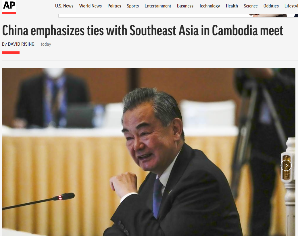 美聯社報道了中國國務委員兼外長王毅4日出席東盟外長會議。東盟4日發布聯合聲明,敦促各方保持「最大限度克制」。聲明中並未提到大陸、台灣地區或美國,也沒有具體說明誰應克制。而王毅在開幕詞中並未提及台海危機,而是強調了中國近年來如何努力與東盟加強「一帶一路」等多邊合作。美國國務卿布林肯也參加了此次會議。