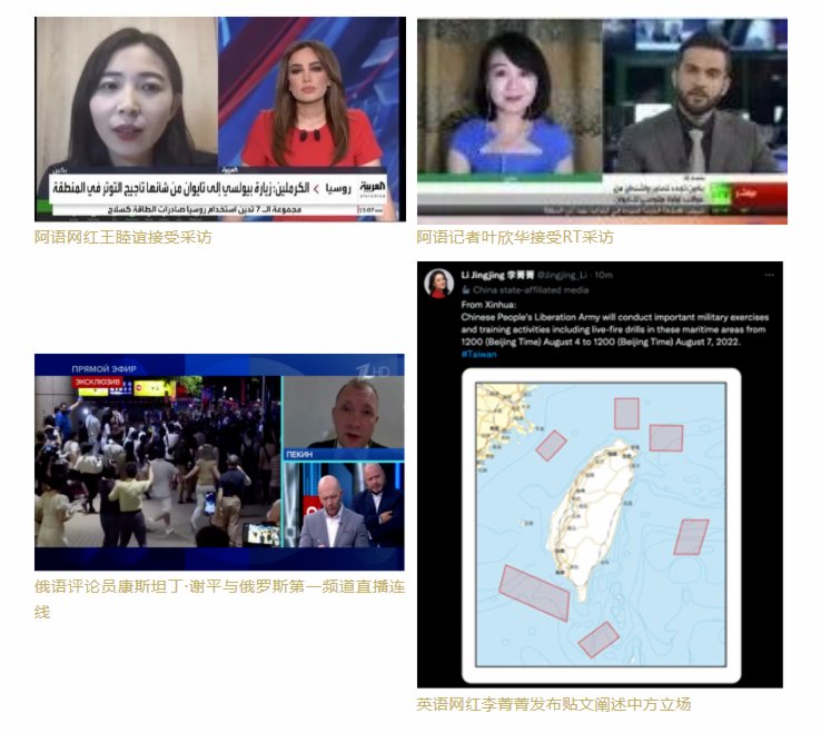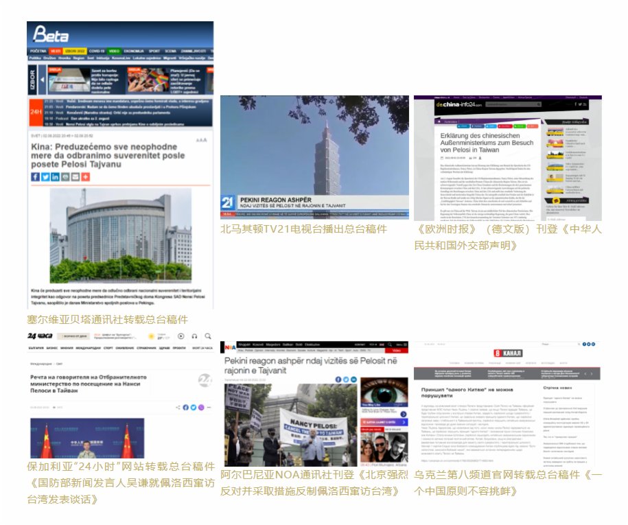 總台德語、塞爾維亞語、阿爾巴尼亞語網紅主播通過網紅產品或與對象國家主流媒體連線積極發聲。通過《快閻快語--佩洛西竄訪台灣:錯誤時間的錯誤選擇》、《東部戰區已在台島周圍開展聯合軍事行動》等一系列新聞產品闡明我方立場,介紹中方反制措施的合理性與必要性。