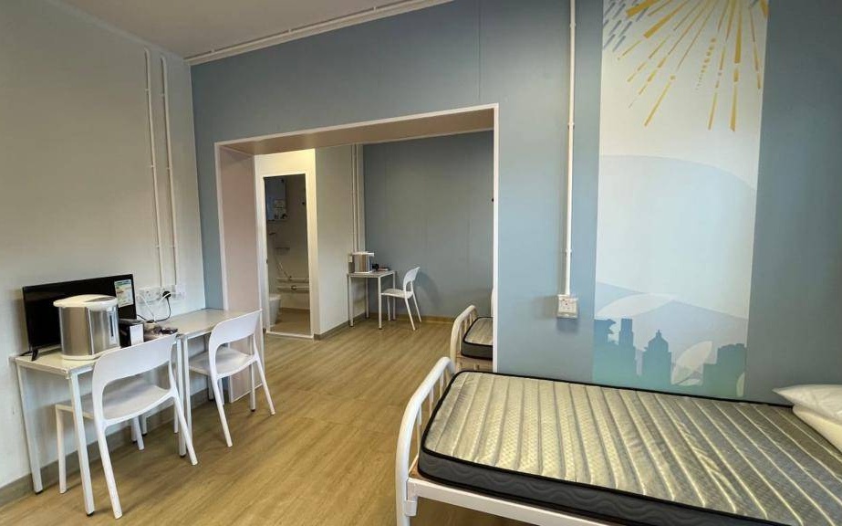 鄧炳強說,啟德社區隔離設施樓高四層,備有升降機,市民及工作人員不需「行得咁辛苦」。啟德社區隔離設施的部分房間享有海景或園景,在大花園亦擺放有一架飛機,每個單位配有獨立廁所同浴室,還有小量家庭套房,方便一家人入住。