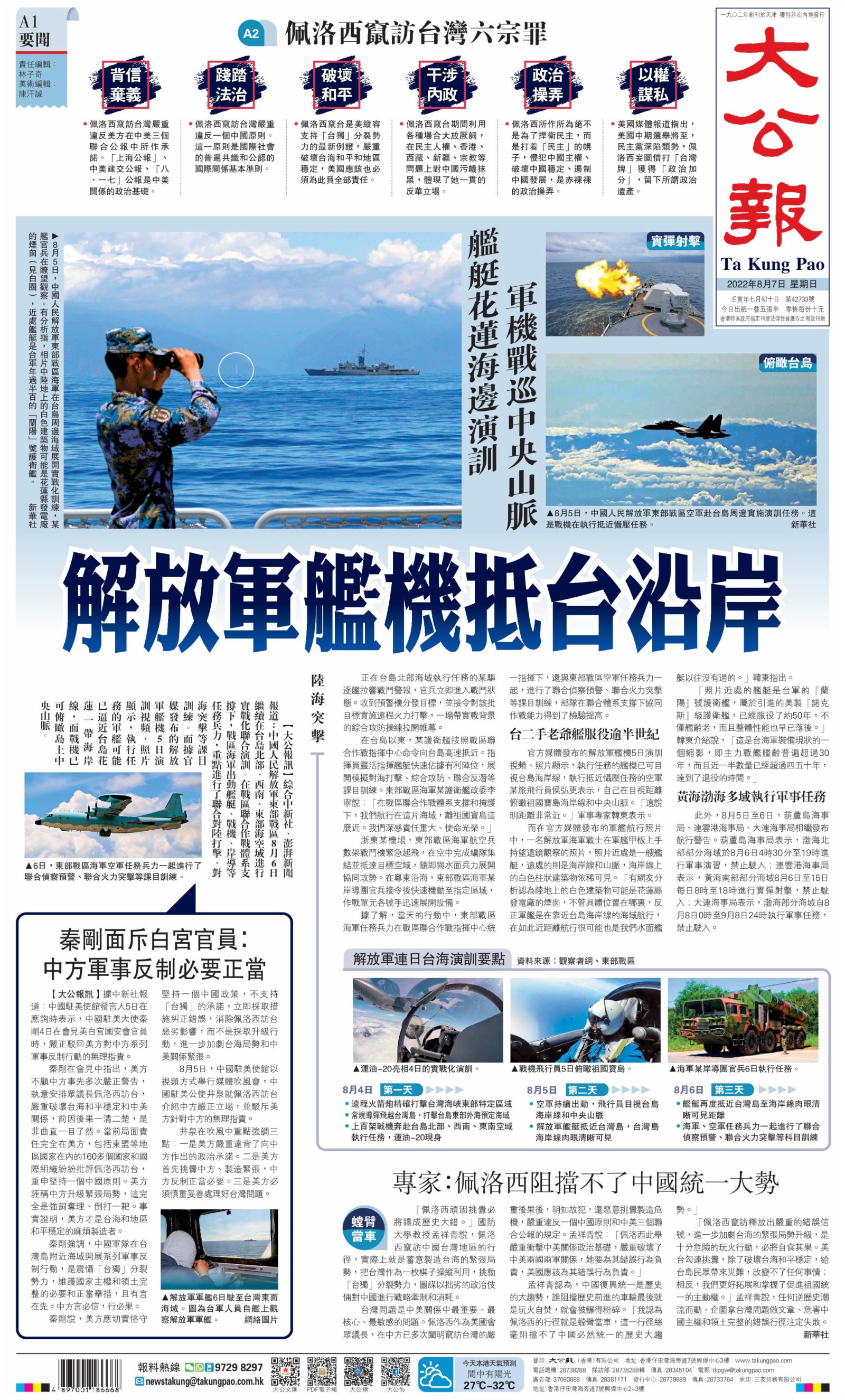 (來源:大公報A1:要聞 2022/08/07)