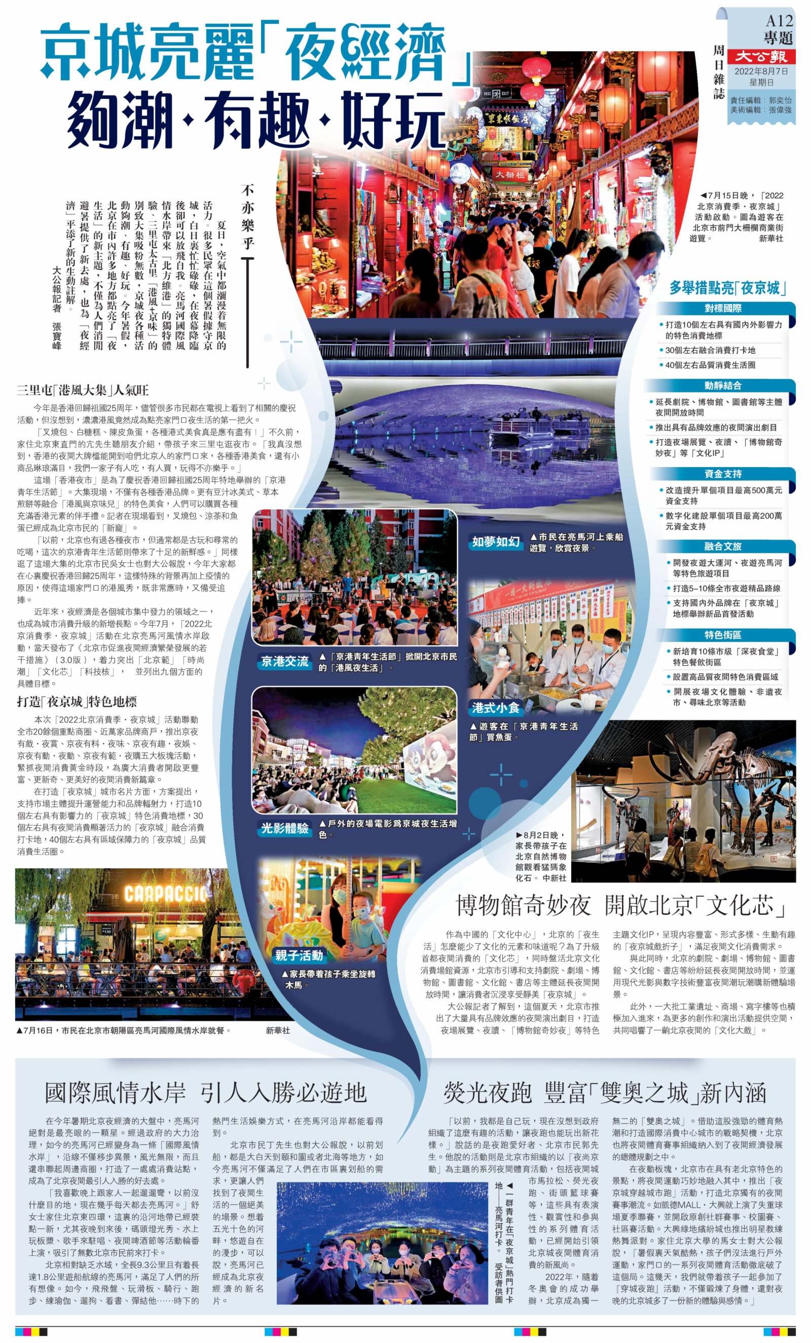 近年來,夜經濟是各個城市集中發力的領域之一,也成為城市消費升級的新增長點。今年7月,「2022北京消費季·夜京城」活動在北京亮馬河風情水岸啟動,當天發布了《北京市促進夜間經濟繁榮發展的若干措施》(3.0版),着力突出「北京範」「時尚潮」「文化芯」「科技核」, 並列出九個方面的具體目標。