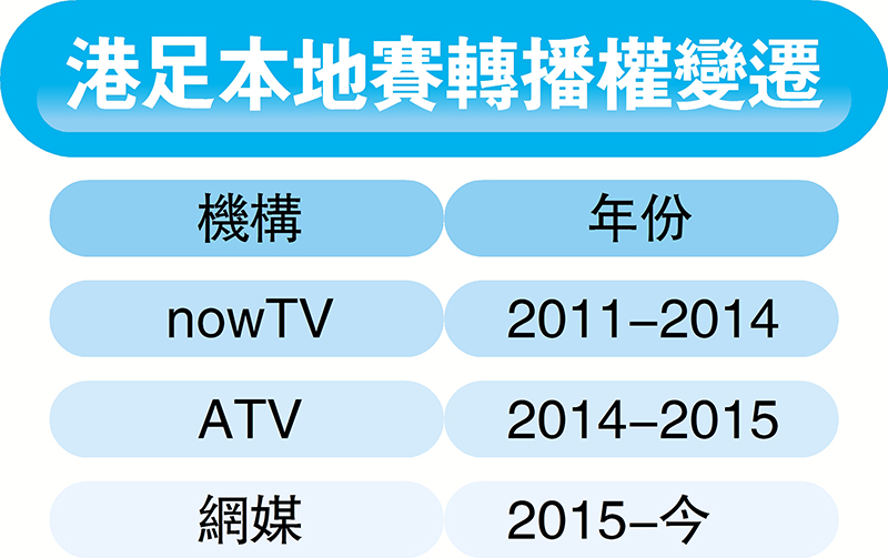 自從收費電視台及網上媒體興起後,本地足球直播已逐漸消失於免費電視頻道。TVB最後一季轉播本地足球賽事,已是2010至11球季。儘管2015年也有直播港隊對國足的世界盃外圍賽,但因本地賽事轉播權先後落入nowTV、亞洲電視(ATV)及網上媒體手上,TVB已再沒轉播過本地賽事。