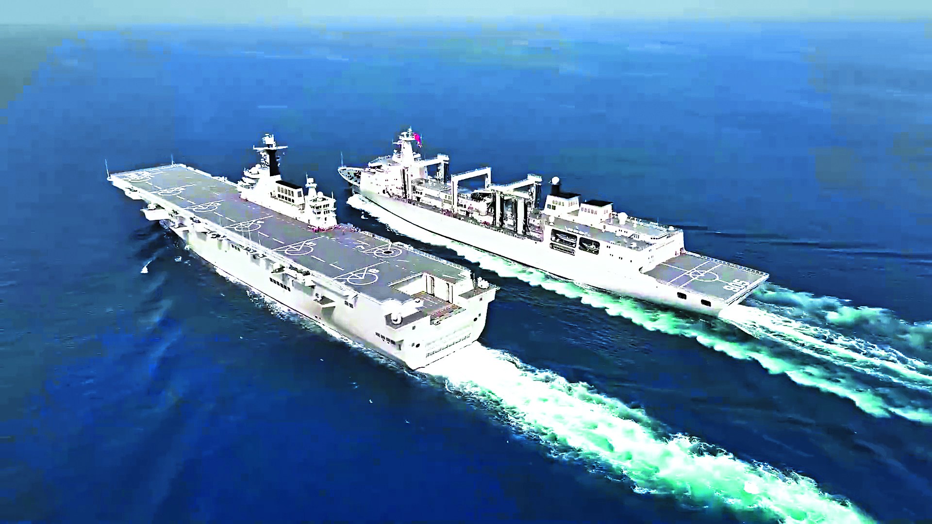 近日,解放軍兩棲攻擊艦海軍廣西艦連續在多個海域開展艦機協同、編隊運動、航行補給等多項訓練,探索驗證了兩攻裝備性能底數和體系支撐能力,為訓練打下堅實基礎。