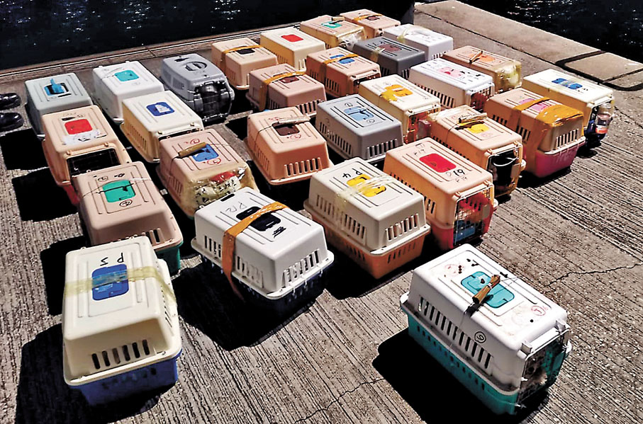 【香港文匯報記者 蕭景源】新冠疫情導致客運及貨運運輸大受影響,一些不法之徒轉而以大批走私方式偷運寵物來港牟利,供本地寵物店售賣。香港警方前晚便破獲今年以來第三宗走私寵物案,在后海灣成功截停一艘非法入境的舢舨,檢獲多達126隻走私的寵物貓狗,牠們被放在狹窄的便攜式寵物籠內,環境非常惡劣,部分更已出現脫水,全部寵物已交由漁護署照顧。案件則由水警總區重案組第一隊繼續跟進,暫未有人被捕。