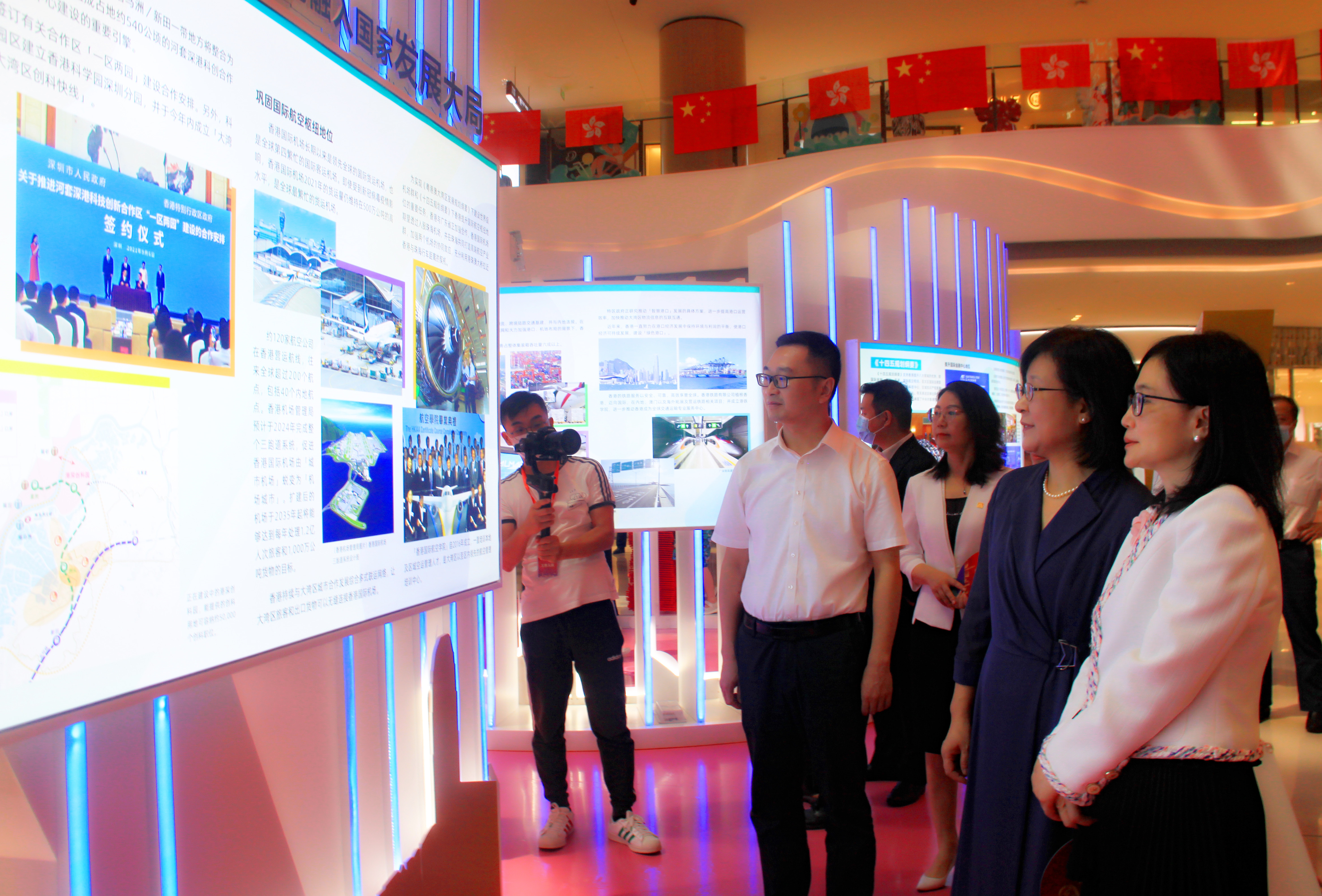 南昌市人民政府副市長趙捷、香港貿易發展局華中代表梁君豪、江西省人民政府外事(港澳事務)辦公室副主任黃小燕、南昌市人民政府副秘書長陳吉煒、南昌市人民政府外事(港澳事務)辦公室主任梅梅及南昌市紅谷灘區副區長羅國亮參加圖片展開幕式。