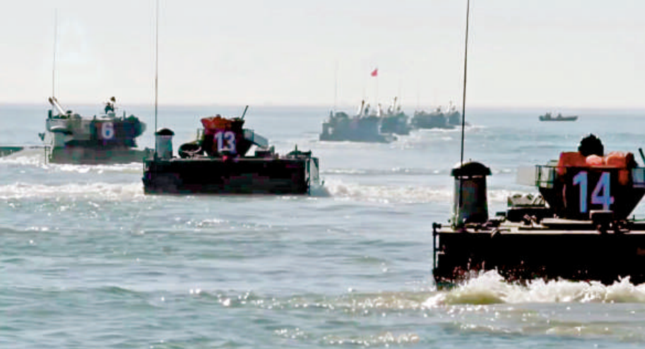 「擔任一梯隊左翼突擊上陸群!」隨着一聲響亮的號令,閩南某海域第73集團軍某兩棲合成旅,開始組織海上突擊演練。接到命令後,各突擊隊向目標海域編波機動,後續梯隊順利處置敵火力壓制、機甲反擊等突發情況,參演官兵迅速搶灘登陸。