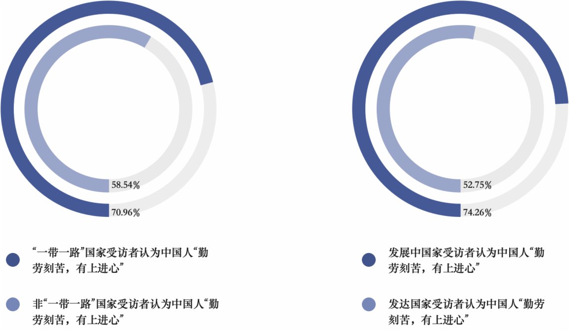 全球民調中,絕大多數受訪者對中國人的印象較為正面,其中「勤勞刻苦,有上進心」列第一位,有84.42%的非洲受訪者和71.18%的歐洲受訪者對中國人的這一傳統美德印象深刻。此外,70.96%的「一帶一路」沿線國家和74.26%的發展中國家受訪者表達了同樣的觀點。在對中國人的印象當中,「愛國,對自己的祖國和文化很自豪」位列第二位,認為中國人「越來越自信」的印象排名第三。