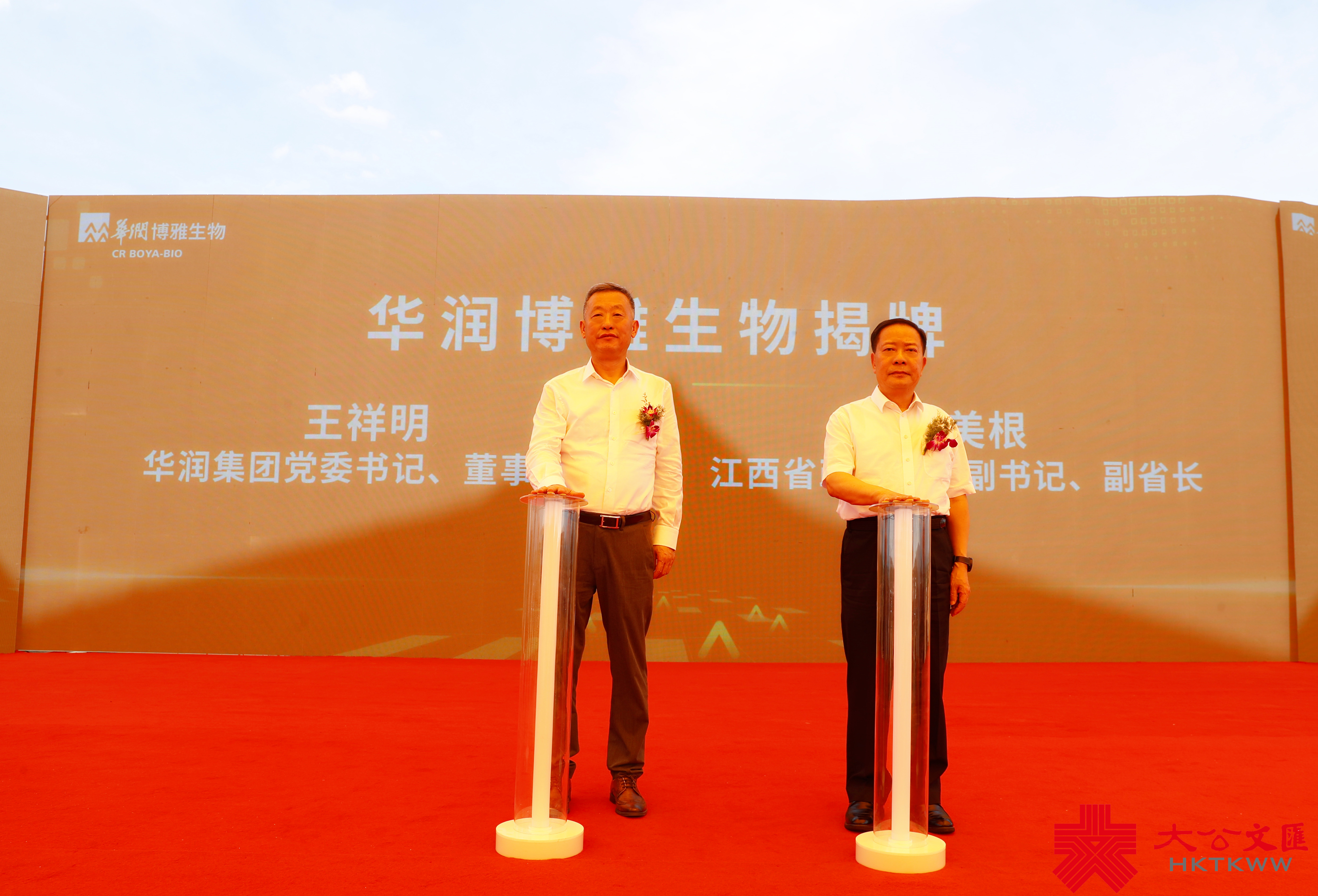 (大公文匯網記者 王逍)10日上午,華潤博雅生物揭牌暨智能工廠開工奠基儀式在江西撫州舉行。江西省政府黨組副書記、副省長殷美根,華潤集團黨委書記、董事長王祥明共同為華潤博雅生物揭牌。