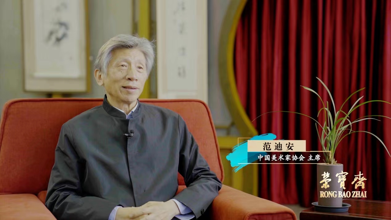 著名畫家、中國美術家協會主席范迪安表示,許多書畫名家能夠在榮寶齋展示自己的作品,讓它們與社會見面。榮寶齋是一個平台、一個窗口,一個連接藝術與大眾的非常寬闊的橋樑。