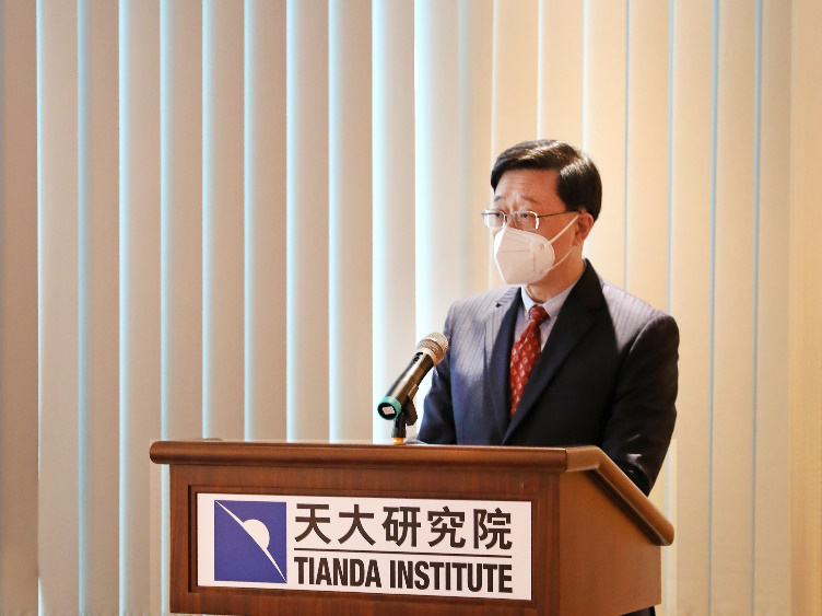 中聯辦秘書長王松苗在致辭中指出,粵港澳大灣區是在一個國家、兩種制度、三個關稅區、三種法系的環境中建設,在世界上沒有先例。五年來,香港以參與大灣區建設為契機,在加快融入國家發展大局中實現了更好發展。特區政府正在推進的北部都會區發展戰略,已成為香港參與灣區高質量建設的重要紐帶,將有力帶動香港國際創科中心的建設。他希望包括天大研究院在內的各路智庫,群策群力,發揮智囊團和思想庫的作用,圍繞推動粵港澳三地的規則銜接、機制對接,提升市場一體化水準,營造世界一流的法治化、市場化和國際化環境等重大問題,深入調研,形成一批高質量研究成果和政策建議,為中央決策和地方實踐提供鏡鑒,同時用好智庫平台,講好灣區故事,讓東方之珠成為全球人才圓夢的高地,香港居民生活的福地。