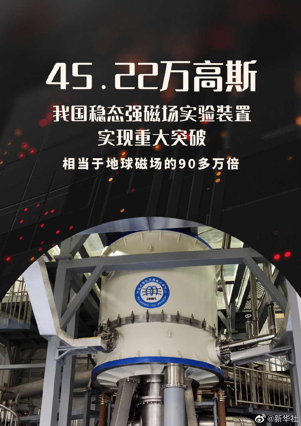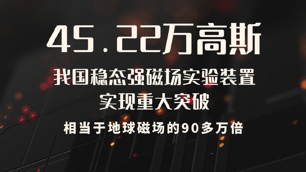 大公文匯全媒體報道,國家重大科技基礎設施「穩態強磁場實驗裝置」昨日(12日)實現重大突破,創造場強45.22萬高斯的穩態強磁場,超越已保持了23年之久的45萬高斯穩態強磁場世界紀錄。由多位中國科學院院士、中國工程院院士組成的專家組鑒定認為,該成果達到國際領先水平。