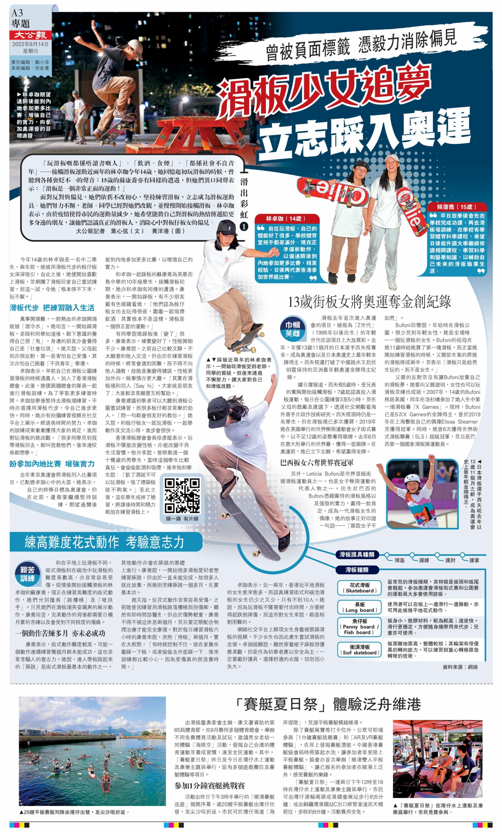 (大公報記者 葉心弦、黃洋港)「玩滑板嘅都係唔讀書嘅人」、「飲酒、食煙」、「都係社會不良青年」……接觸滑板運動近兩年的林卓珈今年14歲,她回憶起初玩滑板的時候,曾聽到各種褒貶不一的聲音;15歲的蘇康喬亦有同樣的遭遇,但她們異口同聲表示:「滑板是一個非常正面的運動!」
