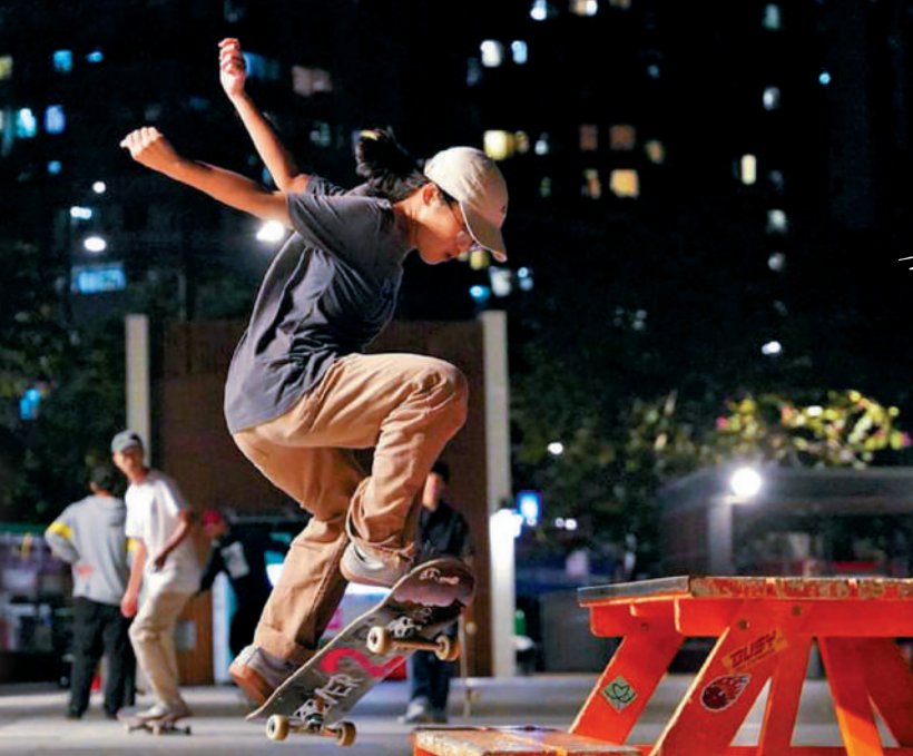 卓珈表示,近一兩年,香港玩平地滑板的女生愈來愈多,而認真練習街式和碗池滑板的女生仍少之又少,只有不到10人。她說,因為玩滑板不僅需要付出時間,亦要經得起跌倒摔傷,而這些對女生來說,都是相對困難的。