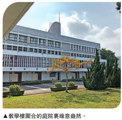 因山勢之高,校園內有巴士接駁,蜿蜒的山路連接起分布在幾個大台階上的建築群。位於山頂的新亞書院核心建築群以錢穆圖書館和合一亭連成的軸線為中心,兩側分別是人文館、誠明館和樂群樓。對稱的空間序列及尺度宜人的圍合予人舒適感。遠遠看見錢穆圖書館門前立着一塊小黑板,上面的粉筆字跡本以為是些稀鬆平常的通知公告,走近一看,怦然心動,上面認認真真抄寫的竟是後主李煜的一首《相見歡》:「林花謝了春紅,太匆匆。無奈朝來寒雨晚來風。胭脂淚,相留醉,幾時重。自是人生長恨水長東。」往後退了幾步,這小小的黑板和主入口上方小小的棕色篆書「錢穆圖書館」相得益彰,一股綿柔而強勁的文人氣息油然而生。心中還未從這感動中抽離出來,正欲從圖書館和誠明樓之間穿過,一陣微風拂過滿樹的紫荊,洋紅的花瓣在空中搖曳盤旋,陽光從枝杈的間隙漏下來,空氣中的塵埃都依稀可見,好一個「林花謝了春紅」。不過不同於後主在暮春時節見此情景的傷春惜花和人生苦短、來日無多的喟嘆,我們看到的是「化作春泥更護花」的憧憬與期盼。