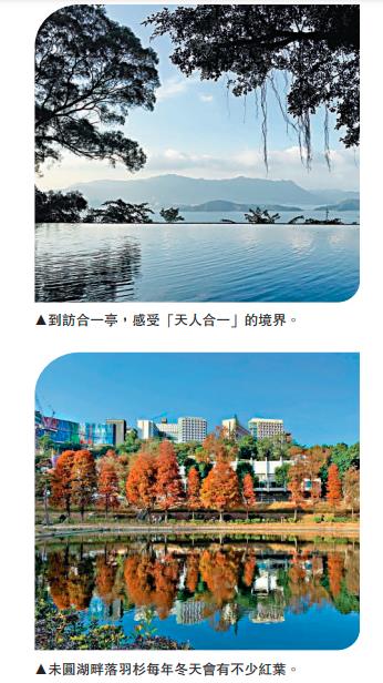 臨海一側的合一亭面向開闊的吐露港,亭前黑磚飾面的平台上,一汪淺淺的池水像鏡子般倒映周圍的環境,和遠處湛藍的海水及更遠處蔚藍的天空連成一片。立在水池中央的大榕樹的枝杈以一道完美的弧線掠過水池,一叢叢的根鬚由上懸垂在水池上方,連同倒影,竟勾勒出一個完整的圓來,頓時讓本已水天一色的奇景又添禪意。所謂「天人合一」,既是儒家探討的人與天命的關係,也可以是道家探討的人與自然的關係。雖然合一亭是為紀念錢穆及其「天人合一論」的新儒學思想所建,眼前所見那無窮無盡的山水相接卻更體現出《莊子·齊物論》中所說的「天地與我並生,而萬物與我為一」的精神境界和審美意趣。