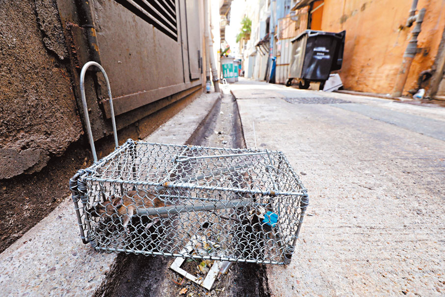 其中在元州街後巷,雖有明顯收拾痕跡,但現場傳出濃烈酸臭氣味。低頭一望,去水渠淤塞嚴重,灰黑污水呈半凝固狀態,有多隻反肚蟑螂屍體漂浮,或與附近食肆未隔油排放污水有關。記者亦看到由食環署放置的多個捕鼠籠,其中一個成功捕捉到一隻碩大肥老鼠。