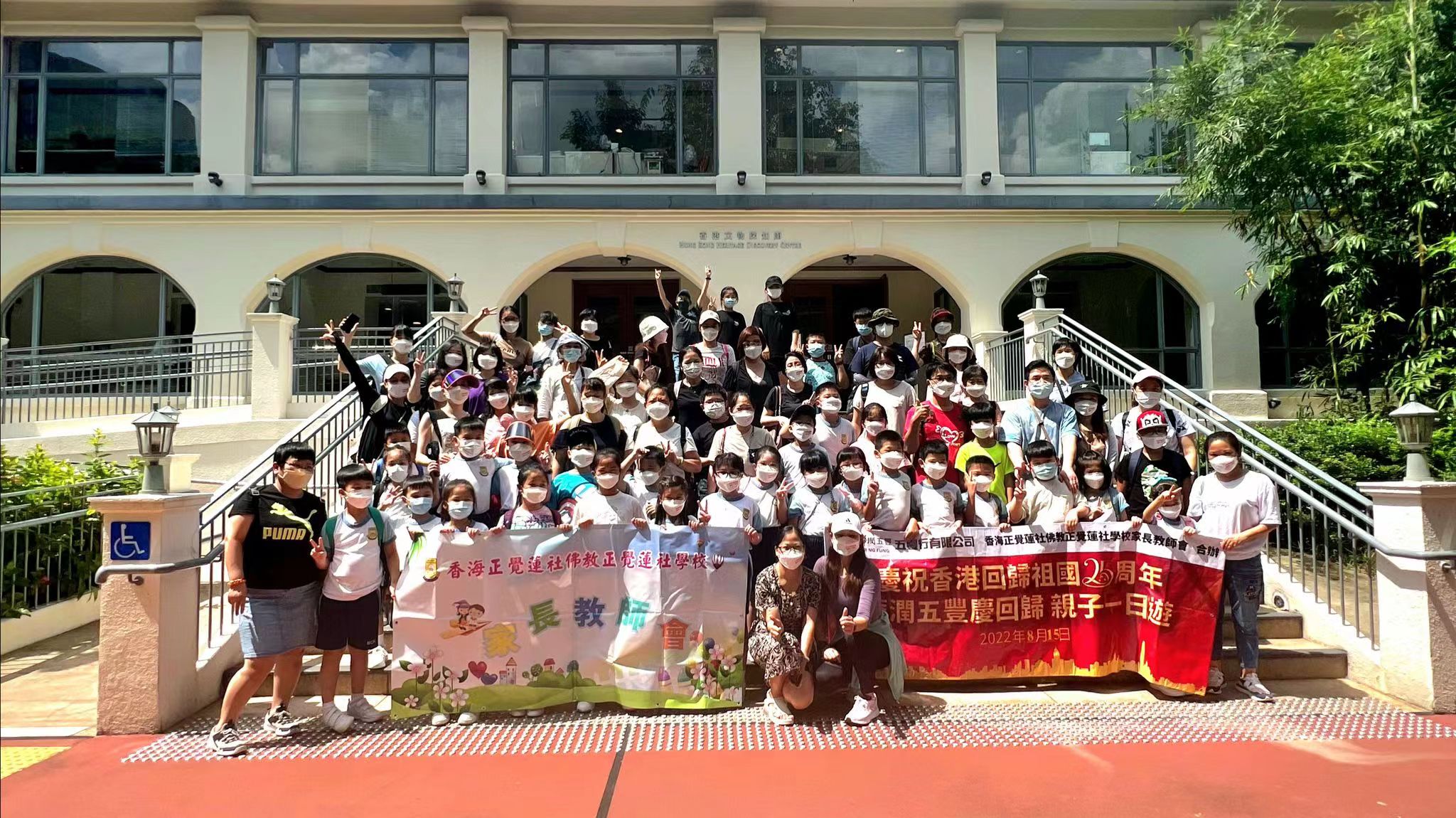 在2022年8月15日慶祝香港回歸祖國25周年之際,華潤五豐、五豐行有限公司聯同香海正覺蓮社佛教正覺蓮社學校家長教師會,合辦了一場別具意義的慶回歸一天遊活動。活動組織了家長及學生共82人參與,行程包括前往西貢斬竹灣抗日英烈紀念碑、九龍公園、香港文物探知館。首站前往國家級抗戰紀念設施西貢斬竹灣抗日英烈紀念碑,向大家講述當年東江縱隊港九大隊在西貢人民的大力支援和幫助下,營救了大批文化精英安全返回內地,援救很多英美盟軍和國際友人脱險,抗擊敵人,為抗日戰爭作出貢獻的歷史。隨後一行人向紀念碑行鞠躬禮,並送上鮮花致敬。