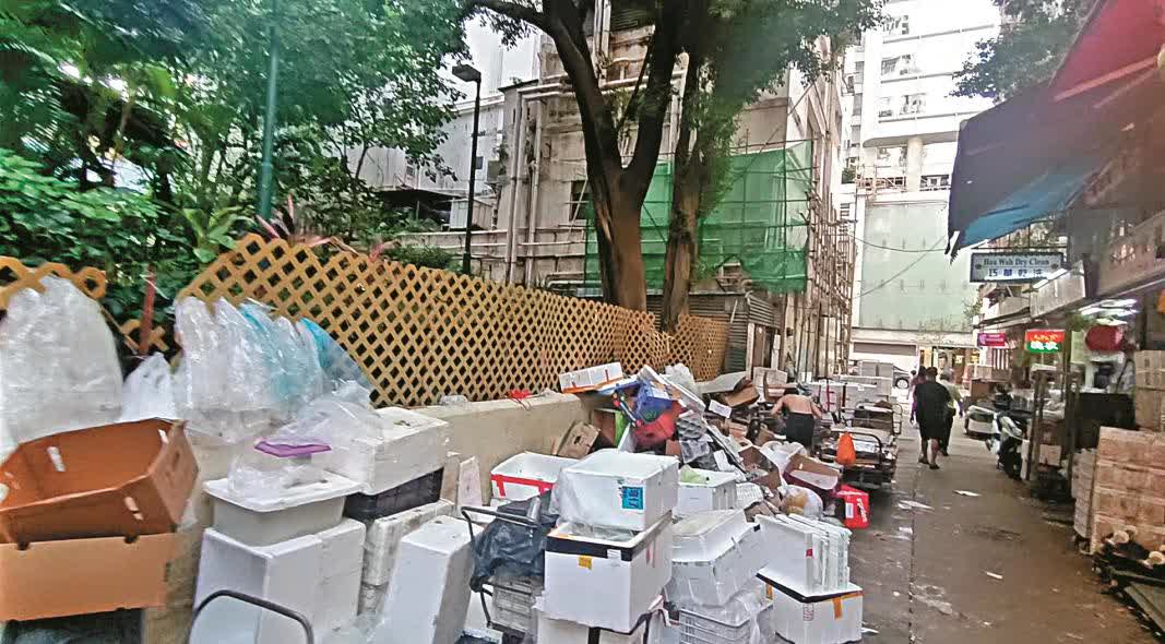 因店舖阻街而被列入衞生黑點之一的灣仔石水渠街,自政府展開「打擊衞生黑點計劃」,大公報記者昨日到場發現大部分店舖擺檔的位置並未阻礙行人,衞生情況不算差,而後巷堆積的垃圾,迅即由垃圾車運走。不過,一街之隔的太和街和三角街,則堆積許多紙皮箱和發泡膠箱。