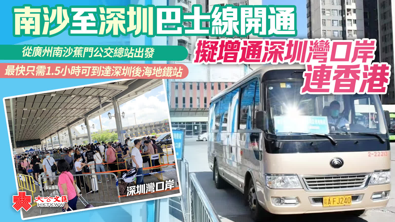(大公文匯網 記者 方俊明)南沙粵港澳全面合作示範區連接深港地區更便捷。記者17日從廣州巴士集團獲悉,廣州南沙至深圳後海地鐵站的巴士線路近日正式開通,而待香港與內地恢復常態化通關後,將直達至深圳灣口岸連接香港。如此,廣州南沙、深圳和香港等地的市民來往將更加便捷,此舉也將加強粵港澳大灣區城市之間的互聯互通,進一步織密大灣區交通網絡。