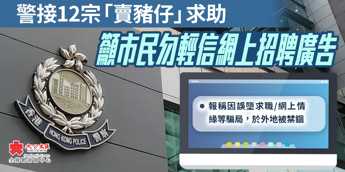 大公文匯全媒體報道,柬埔寨、緬甸、泰國近年有電訊詐騙集團,以高薪利誘華人到當地打工,但很多人到埗後就被「賣豬仔」,要支付高額的贖金才能脫身。近日有報道指,數名港人被困柬埔寨,無法脫身。入境處表示,今年1月至今接獲17宗港人家屬求助,指他們的家人懷疑在泰國、緬甸、柬埔寨和老撾失聯,其中12名港人已安全離開當地;警方表示,於今年1月至今,接獲12宗求助個案,報稱因誤墮求職/網上情緣等騙局,於外地被禁錮。
