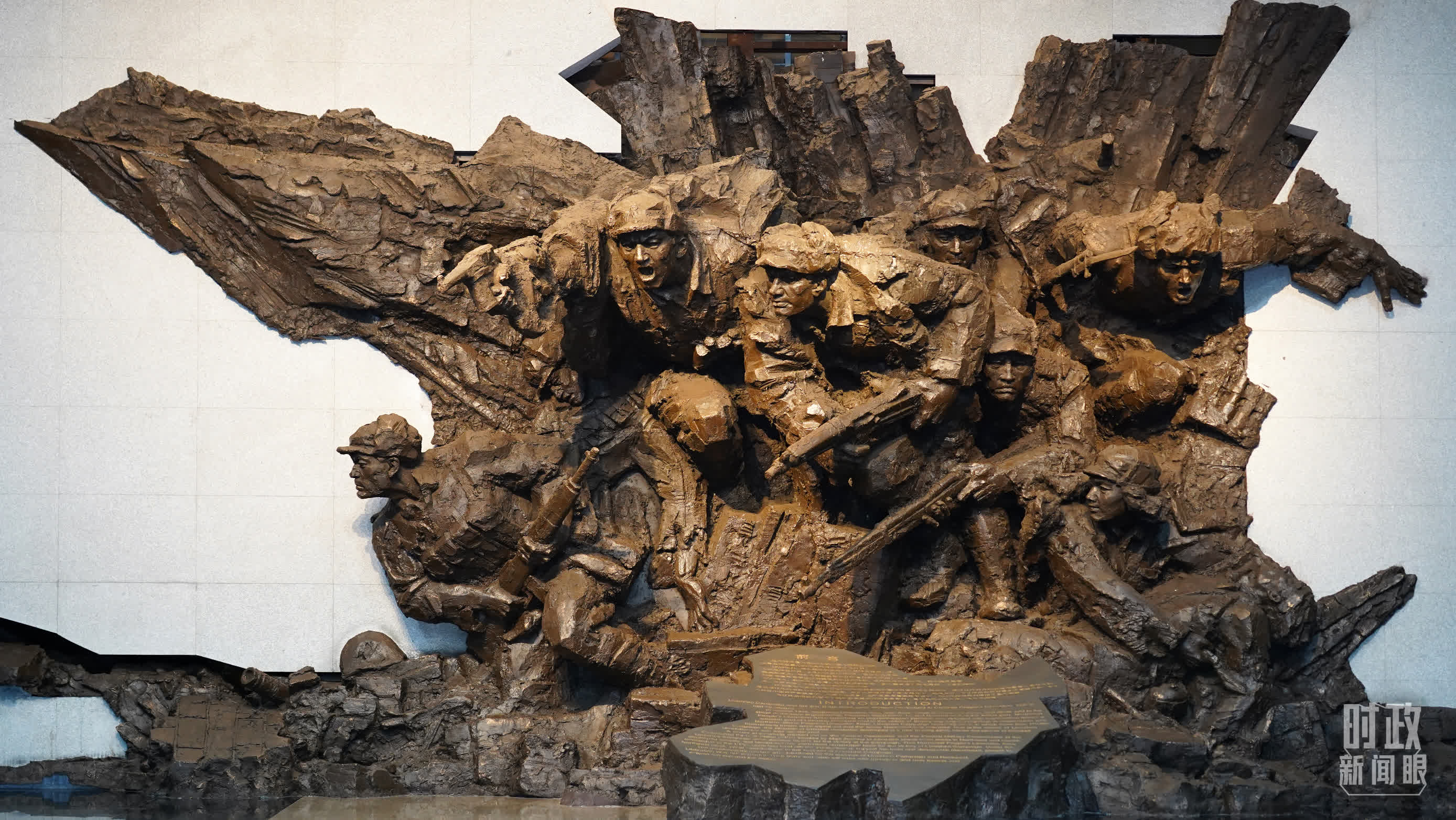步入序廳,迎面是名為「決戰決勝」的大型浮雕,展現的是衝鋒戰士冒着炮火奮勇向前。