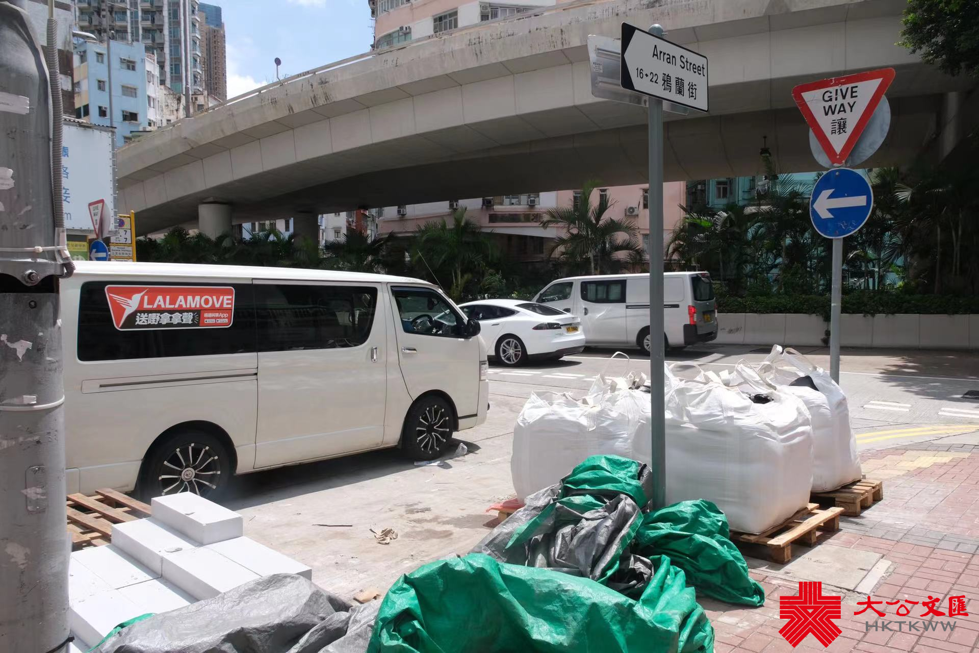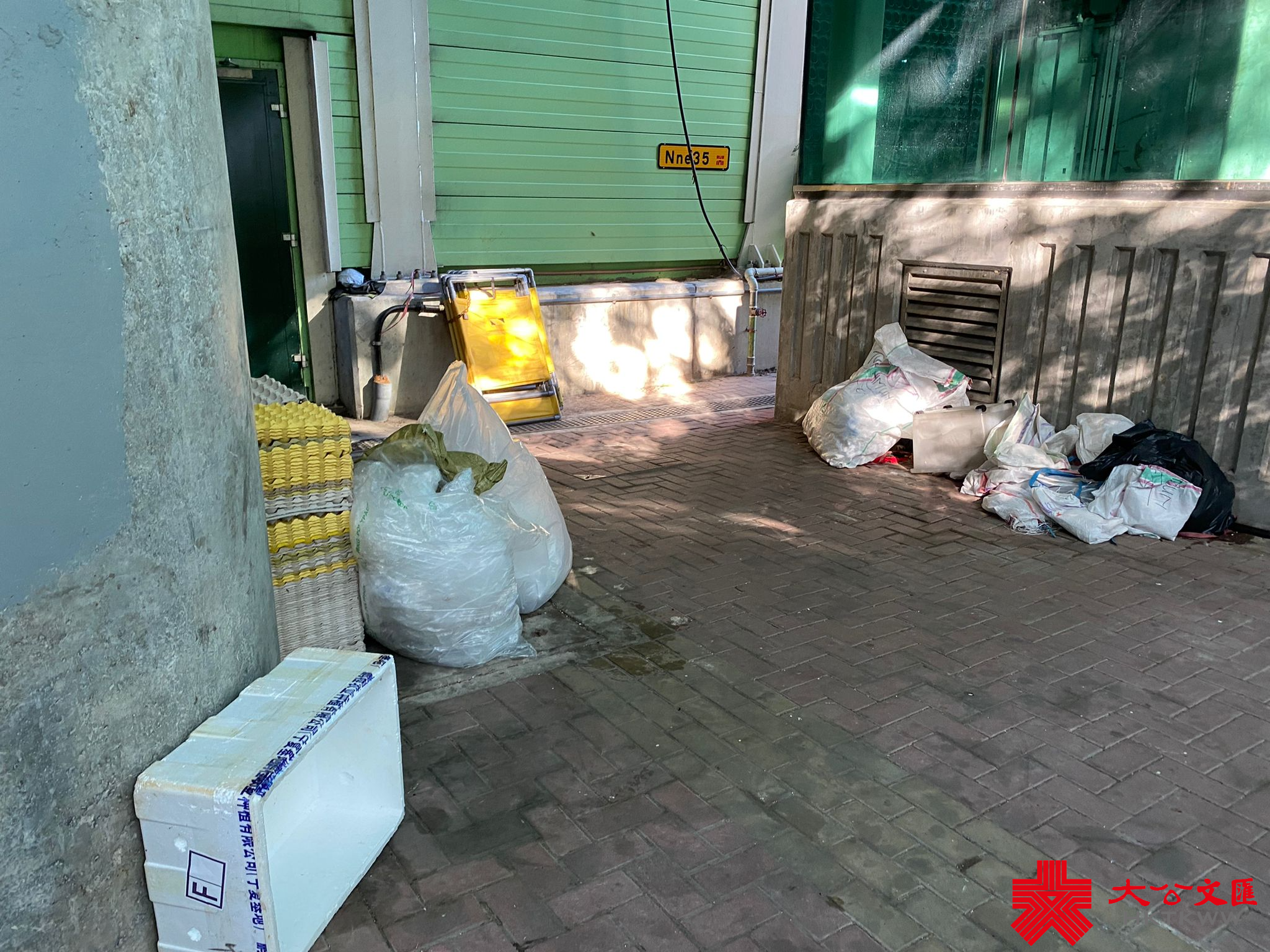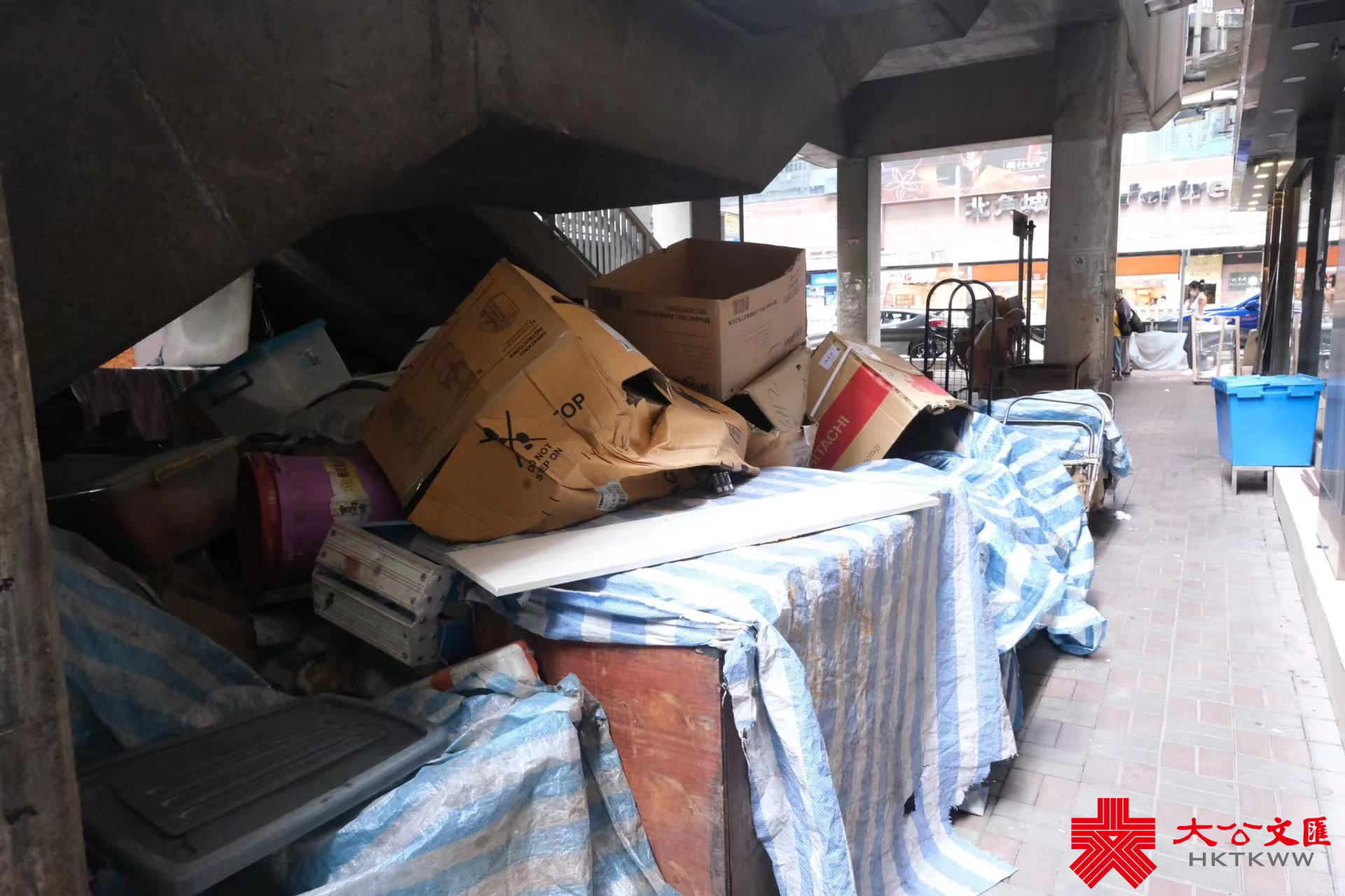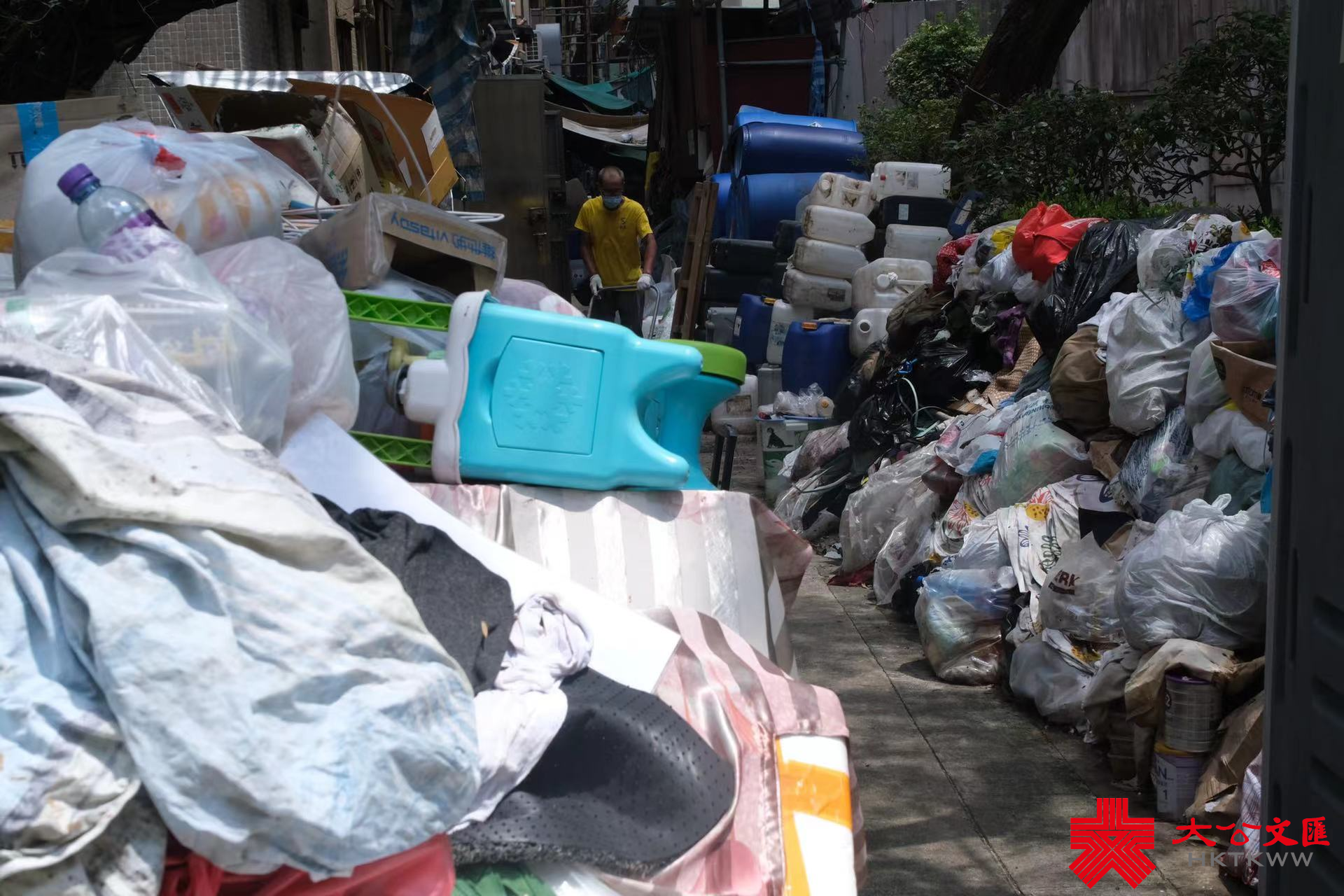 據名單所示,九龍深水埗區大南街共有5處的衞生黑點,包括有環境衞生、棄置建築廢料、後巷衞生及鼠患問題。記者在現場所見,不同類別的垃圾都放於行人路及馬路上,垃圾收集站發現不少建築用竹管被拋放在馬路上。