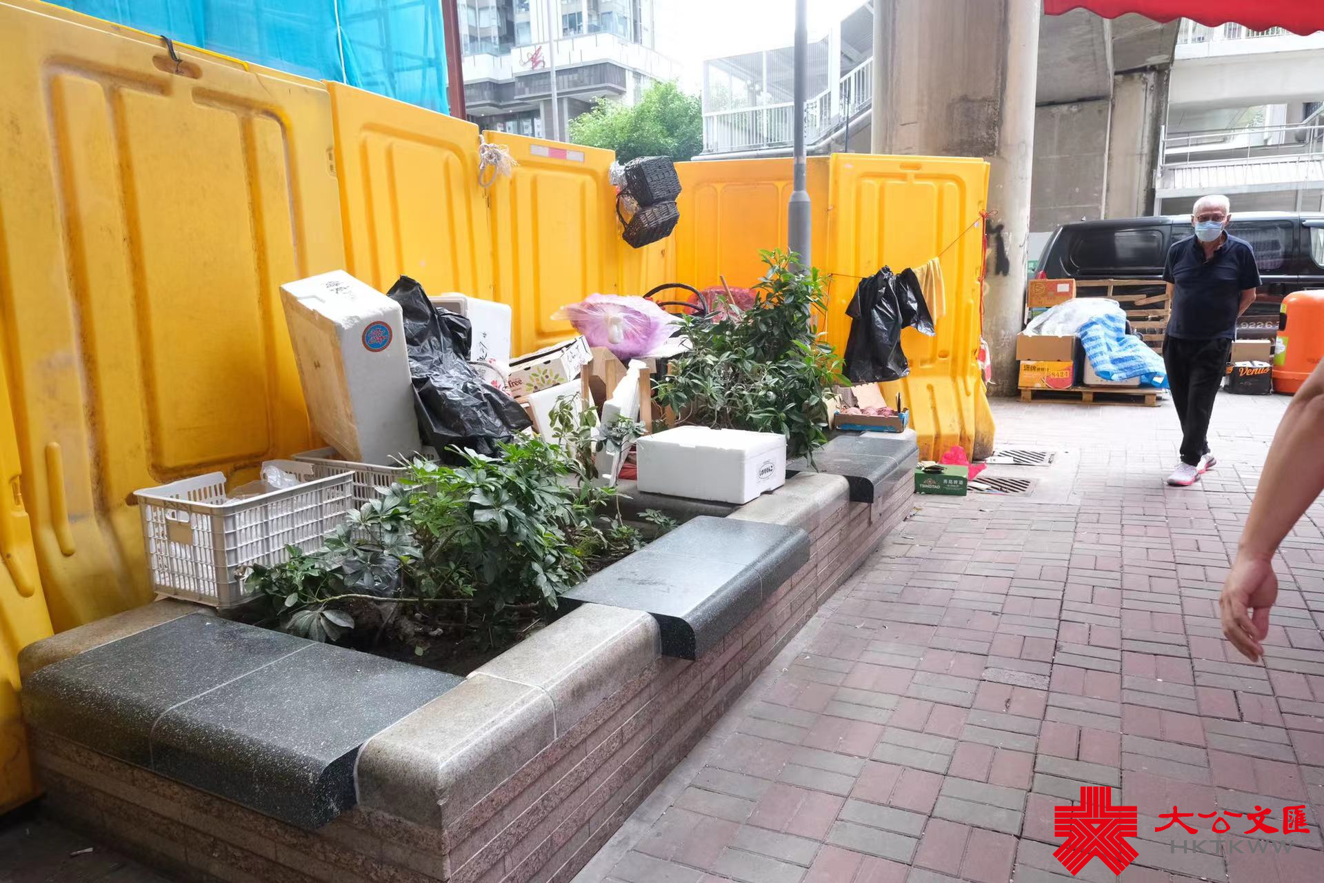 及後,記者到達港島北角區的福全街和京華街一帶,現場位置雖未納入「18區衞生黑點名單」之內,可是環境衞生情況同樣堪憂,後巷處的垃圾未有放好,油跡及污水在地面上混合一起,用於美化市容的花槽竟被人放置大量膠籃、垃圾袋及發泡膠等垃圾,旁邊的水碼圍擋更有人晾曬衣服及毛巾。
