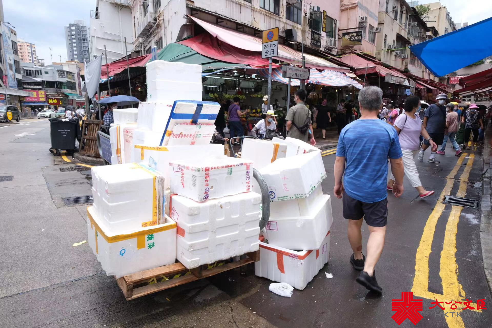 其中,「發泡膠山」的情況尤為嚴重,根據最新估算現時每天供港付運蔬菜的發泡膠箱約10萬個,約40公噸,而疫情下內地禁止循環使用曾運往香港的發泡膠箱,又暫停跨境貨車運載發泡膠箱到內地回收廠,觸發多區出現數米高的「發泡膠山」情況,既阻街又影響衞生。大公文匯全媒體記者近日走訪港九新界多個街市直擊情況,發現有個別地區情況仍然十分嚴重。