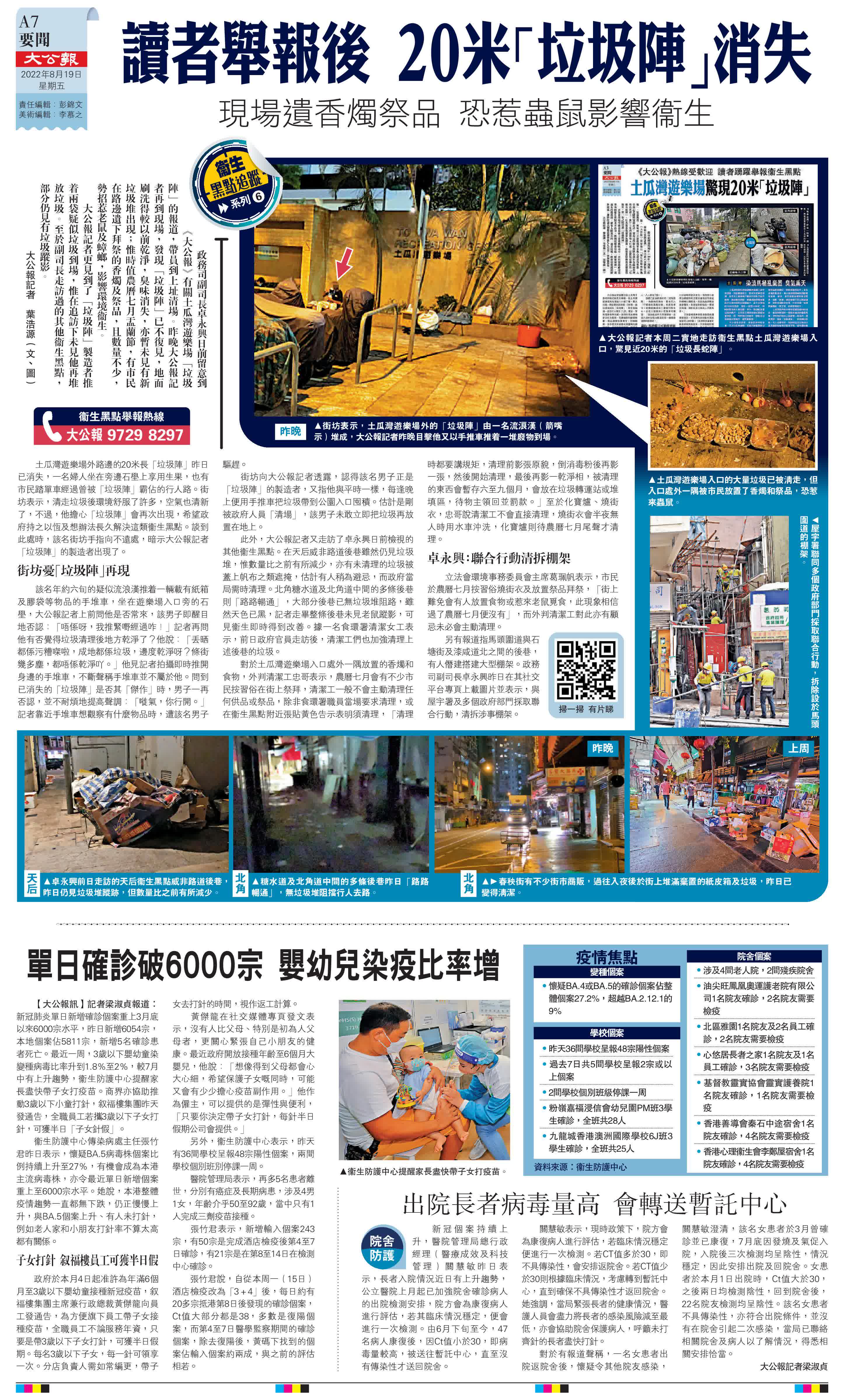 大公報記者更見到了「垃圾陣」製造者推着兩袋疑似垃圾到場,惟在追訪下未見他再堆放垃圾。至於副司長走訪過的其他衞生黑點,部分仍見有垃圾蹤影。