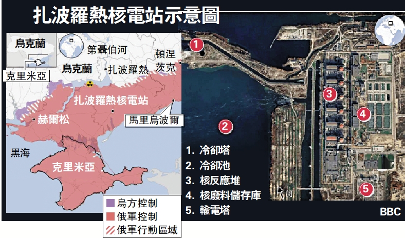 大公報綜合BBC、CNN、路透社報道,烏克蘭情報部門18日警告,俄羅斯可能於當地時間19日對位於烏南部的扎波羅熱核電站發動攻擊,並試圖將責任歸咎於基輔。俄羅斯日前則警告在烏方的持續炮擊下,核電站發生「人為災難」的風險升高。俄外交部18日表示,烏方在利用該核電站進行「核訛詐」, 俄方無法接受將核電站及附近地區「非軍事化」的提議。