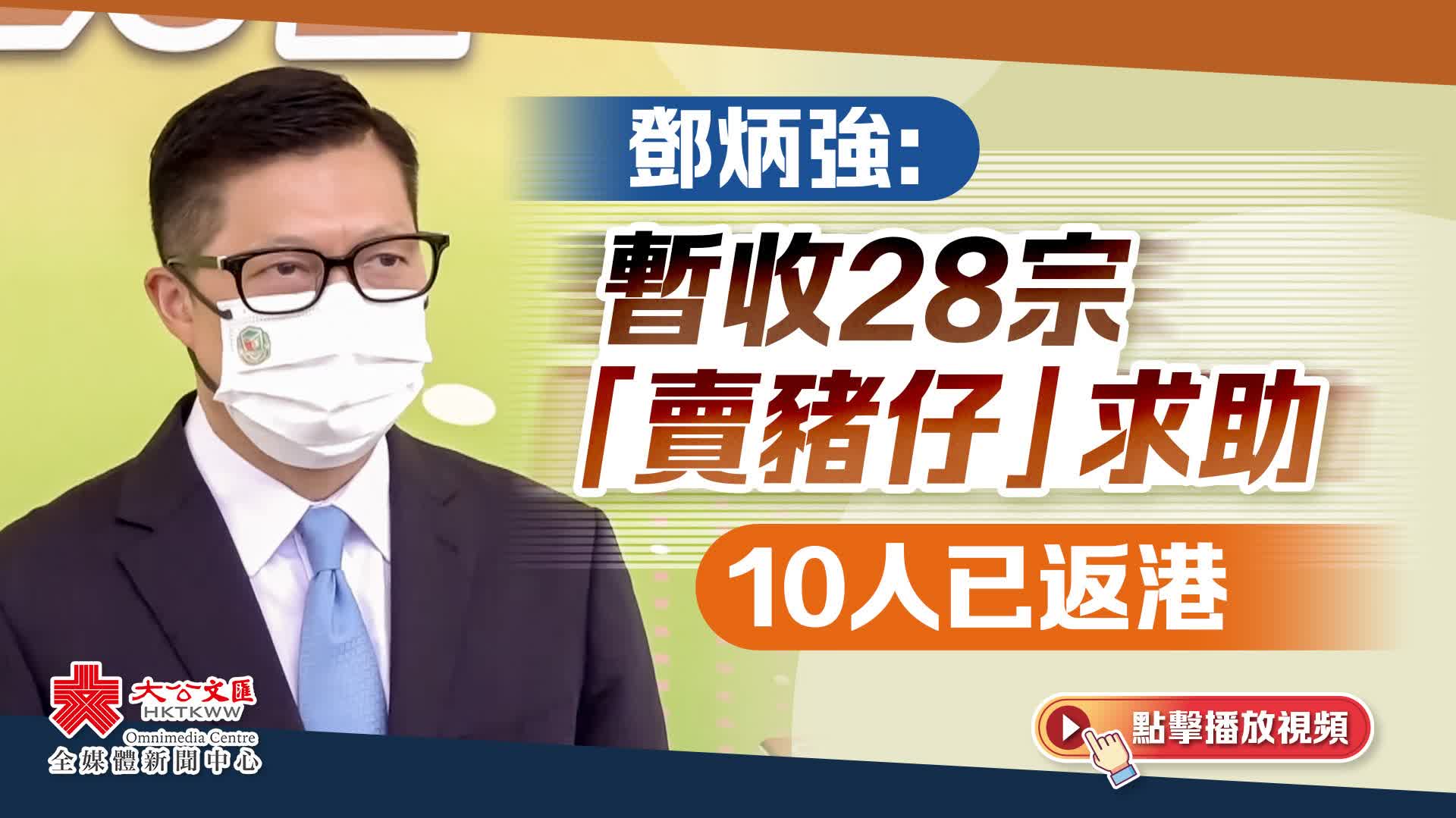 (大公文匯全媒體記者李九歌報道)近期有香港人懷疑被誘騙到柬埔寨、泰國、緬甸等東南亞國家,遭禁錮從事非法工作。保安局局長鄧炳強今日(20日)表示,目前執法部門接到28宗求助個案,其中14人確認安全,有10人已經回港,另有14人相信其中10人在緬甸4人在柬埔寨。