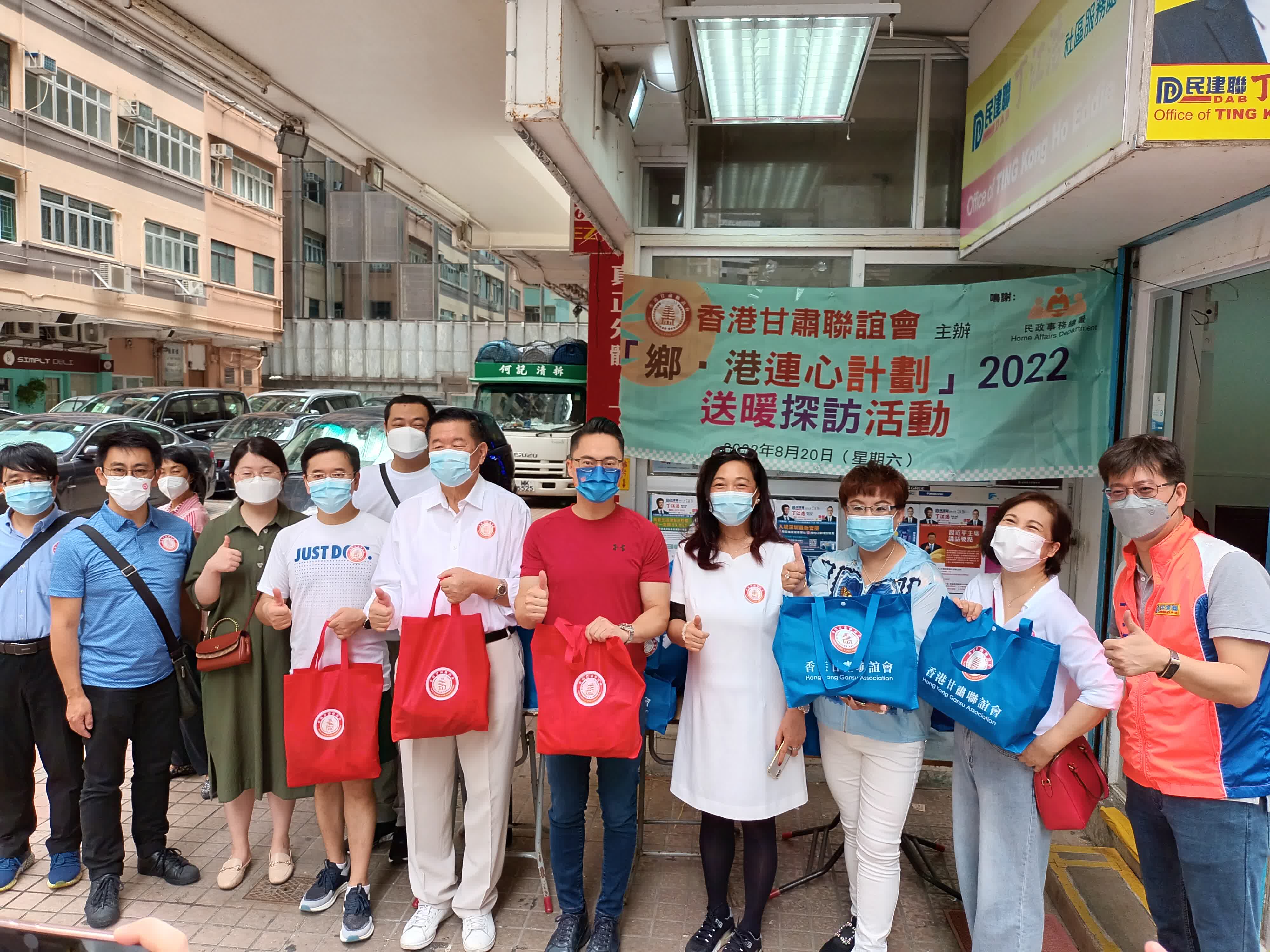 民政事務總署為慶祝香港回歸祖國25周年暨國慶73周年聯同各社區社團舉辦一系列活動,香港甘肅聯誼會七月份參與民政事務總署舉辦「同鄉文化名勝展」,成功展示甘肅曆史悠久,文化厚重,各具特色展品食品得到廣大市民好評。香港甘肅聯誼會再次舉辦「鄉、港連心計劃」送暖探訪活動,贈送甘肅優質食品,以回饋市民對甘肅優質産品的需求。在當前疫情數字反復攀升的情況下,探訪港島東區及九龍紅磡區鄉親及基層市民並贈送載滿甘肅優質食品的愛心福袋。