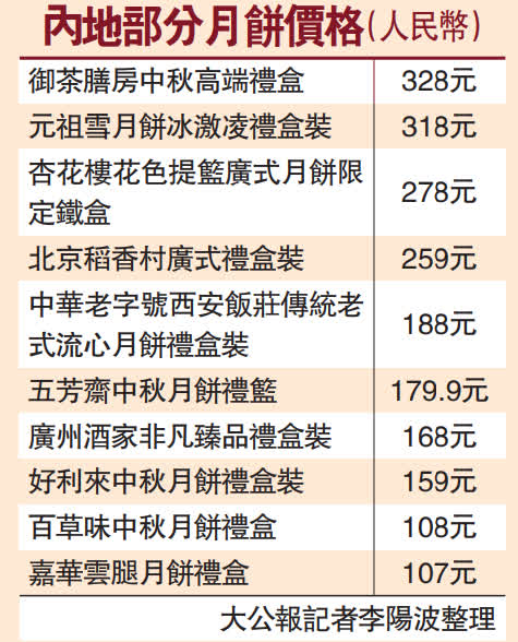 (大公報記者 李陽波、盧冶、林凱)中秋節前夕,「天價」月餅現象引發關注。國家發改委等四部門之前發文《關於遏制「天價」月餅、促進行業健康發展的公告》,提出對單價超過500元(人民幣,下同)的盒裝月餅實行重點監管,各地月餅市場一夜間都退回到500元「紅線」以下,包裝亦反璞歸真、簡約接地氣。「今年月餅禮盒價格比較親民,最貴的才399元,每塊才19元,可以說非常划算了。」長春一位銷售員李女士說。同時不少本地品牌走俏,有消費者留言:「吃出了小時候的味道」。